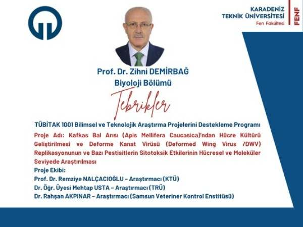 Prof. Dr. Zihni DEMİRBAĞ'a TÜBİTAK 1001 Bilimsel ve Teknolojik Araştırma Projelerini Destekleme Programı kapsamında proje desteği