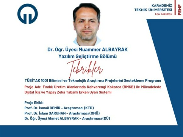 Dr. Öğr. Üyesi Muammer ALBAYRAK'a TÜBİTAK 1001 Bilimsel ve Teknolojik Araştırma Projelerini Destekleme Programı kapsamında proje desteği