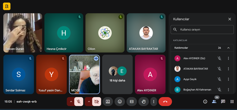 Fizik Anabilim Dalı olarak etkinliğe değerli katkılarından dolayı konuşmacı Osman Dindar’a, etkinliği organize eden Doç. Dr. Selcen Uzun Duran’a, çevrimiçi oturumun kesintisiz ve verimli şekilde yürütülmesini sağlayan Arş. Gör. Taylan Başkan’a teşekkür ederiz. Ayrıca etkinlik sürecine destekleri ve ilgileri için tüm katılımcılara teşekkür ederiz.