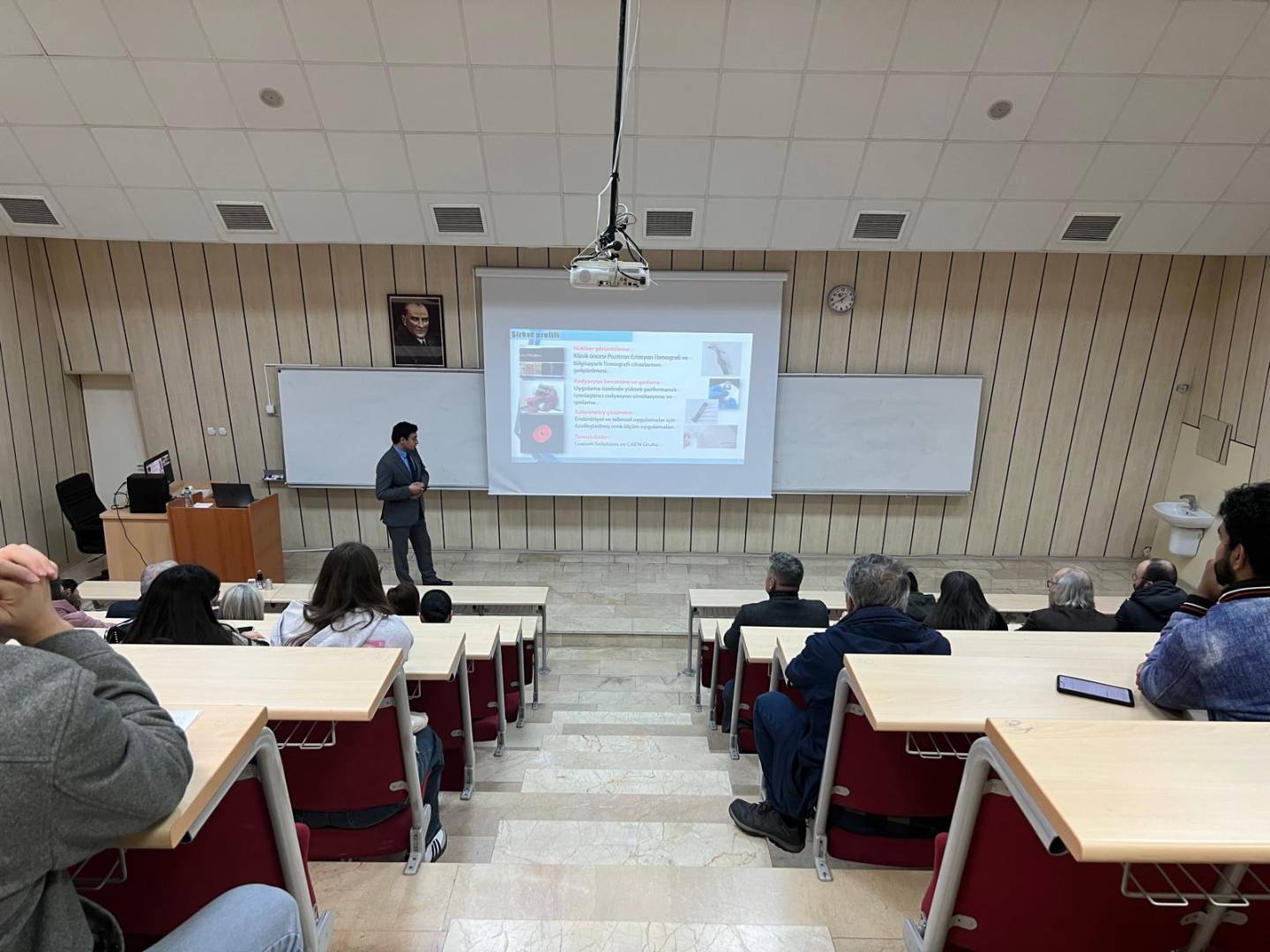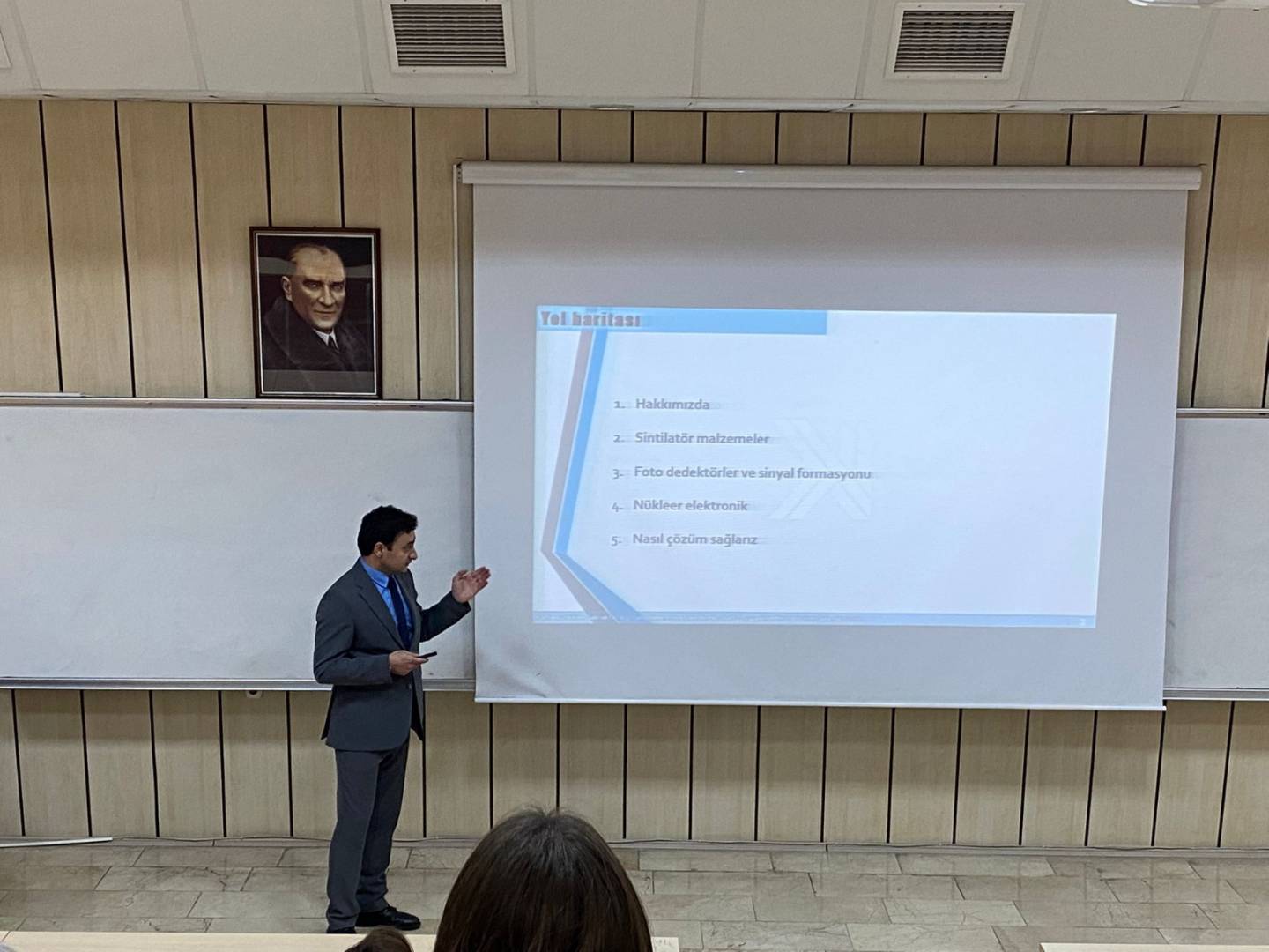 Seminer, 15 Ocak 2026 Perşembe günü saat 13:30’da, KTÜ Fizik Bölümü Küçük Amfi’de düzenlendi. Etkinlikte, sintilatör dedektörlerin temel çalışma prensipleri, kullanılan sintilatör malzemelerin fiziksel ve optik özellikleri, ışık üretim ve toplama mekanizmaları ile bu sistemlerin nükleer ölçüm ve radyasyon dedeksiyonundaki uygulamaları ayrıntılı olarak ele alındı. Ayrıca, nükleer elektronik cihazların dedektör sistemleriyle entegrasyonu, sinyal işleme teknikleri ve pratik uygulamalardan örnekler katılımcılarla paylaşıldı. Seminer, öğrenciler ve akademik personel için hem temel bilgiler hem de uygulamaya yönelik deneyimler sunması açısından oldukça verimli geçti.