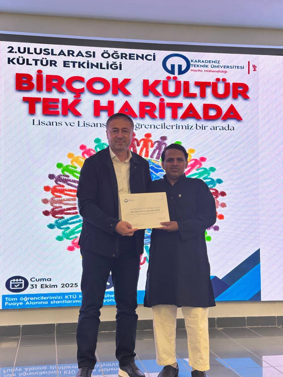31 Ekim 2025 tarihinde Karadeniz Teknik Üniversitesi Harita Mühendisliği Bölümü tarafından “Birçok Kültür Tek Haritada” sloganıyla düzenlenen 2. Uluslararası Öğrenci Kültür Etkinliği, Prof. Dr. Erdoğan Özbenli Amfisi’nde saat 14.00’te gerçekleştirilmiştir. Program, Bölüm Başkanımız Prof. Dr. Mualla Yalçınkaya’nın açılış konuşmasıyla başlamış, ardından Mühendislik Fakültesi Dekanımız Prof. Dr. Temel Varol konuşmalarını gerçekleştirmiştir.