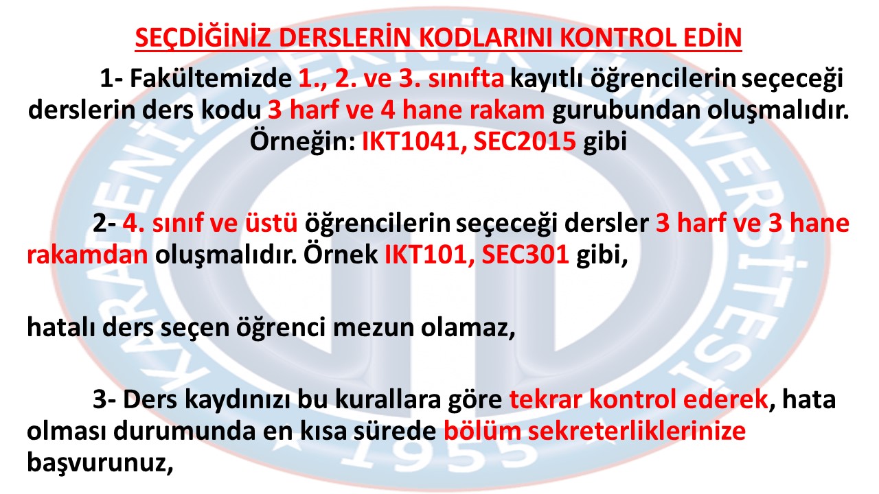 Seçdiğiniz Derslerin Ders Kodlarını Kontrol Edin