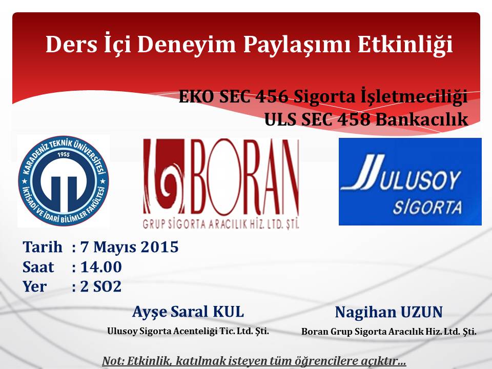 Ders İçi Deneyim Paylaşımı "ulusoy Sigorta Acenteliği Tic. Ltd. Şti. ve Boran Grup Sigorta Aracılık Hiz. Ltd. Şti."
