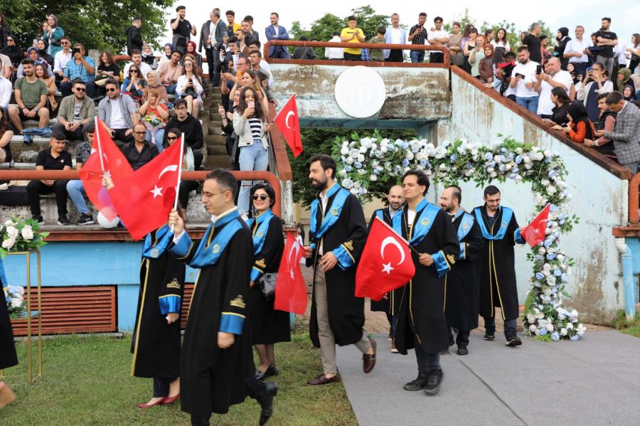 Karadeniz Teknik Üniversitesi, İktisadi ve İdari Bilimler Fakültesinin 2021-22 Eğitim-Öğretim yılı mezuniyet töreni KTÜ stadyumunda gerçekleştirildi. 40. dönem mezunlarını vermesi dolayısıyla tören büyük bir coşku ile kutlandı. Törene Rektör Prof. Dr. Hamdullah Çuvalcı, Rektör Yardımcısı Prof. Dr. Cemil RAKICI , akademik ve idari personel, protokol üyeleri ile Fakültenin ilk dönem mezunları ve emekli öğretim üyeleri de katıldı. Yaklaşık bin civarında mezun veren Fakültede gelen aileler tribünleri doldurdu.