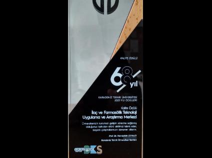 KTÜ 2024 yılı Kalite Ödülü uygulama ve araştırma merkezleri kategorisinde dördüncü kez İLAFAR'a verildi.