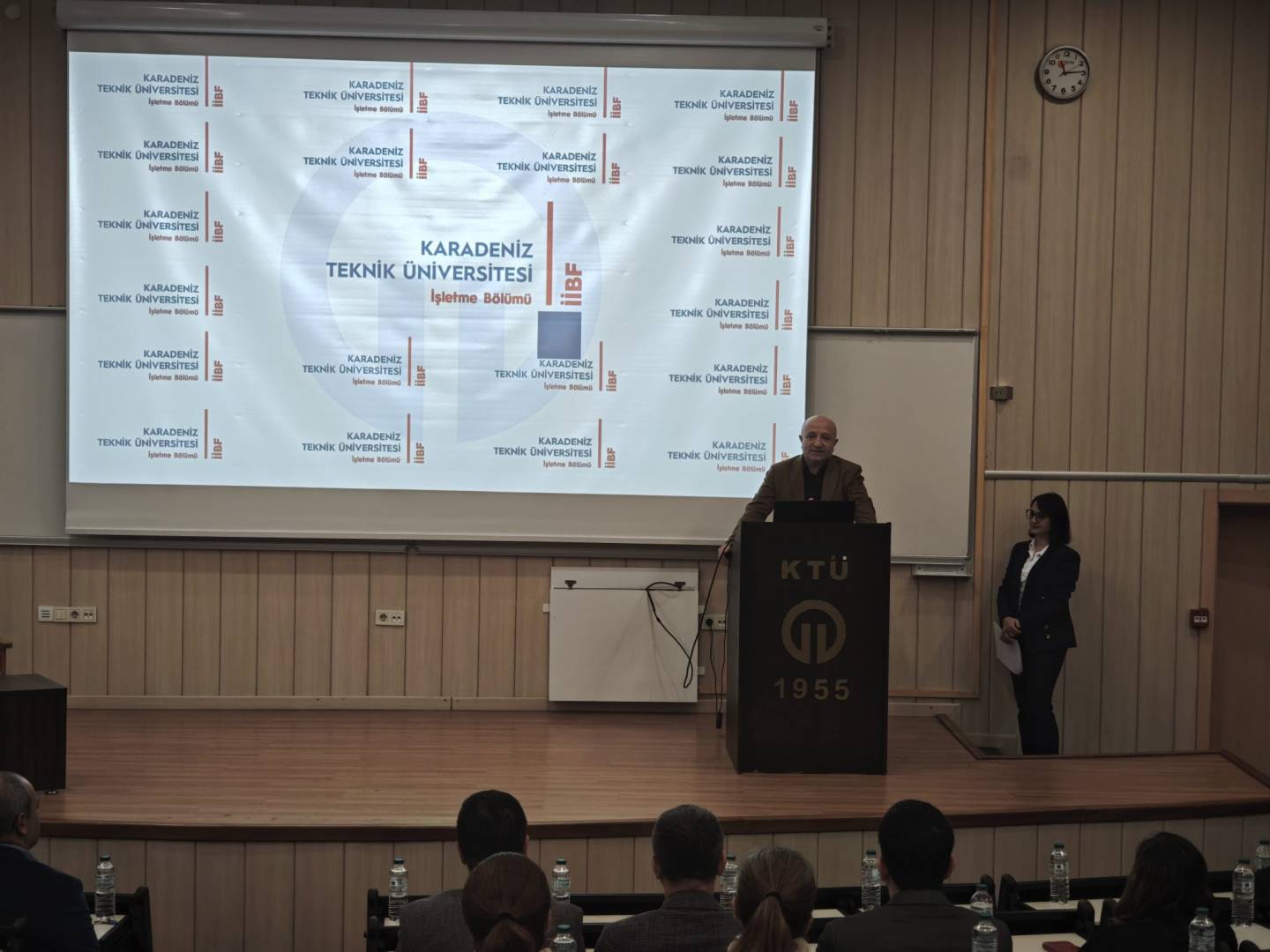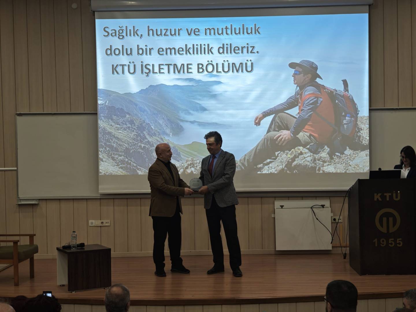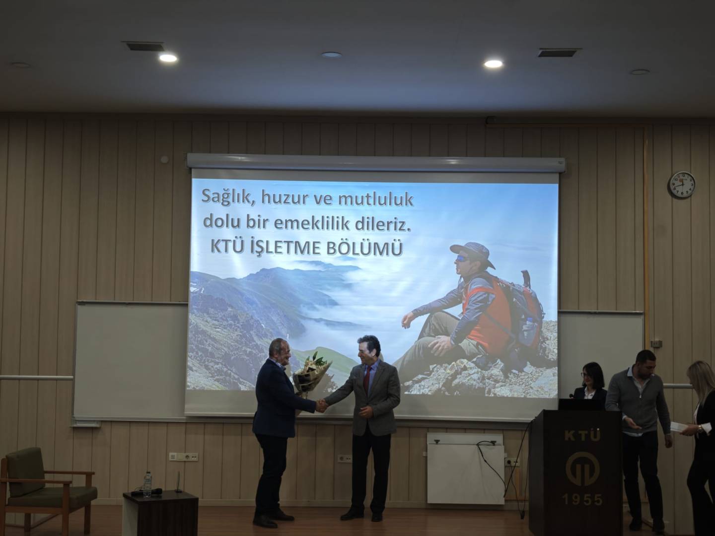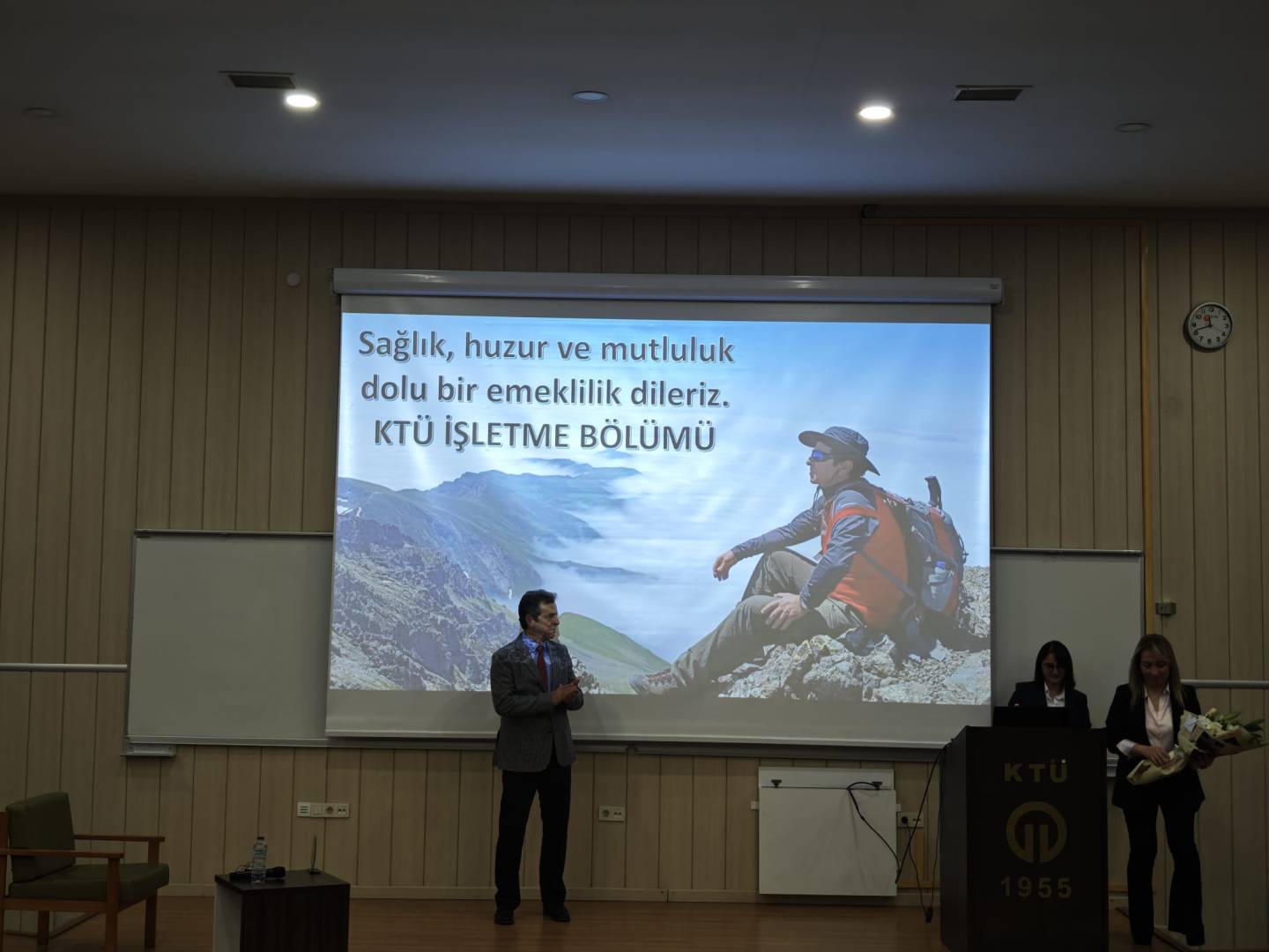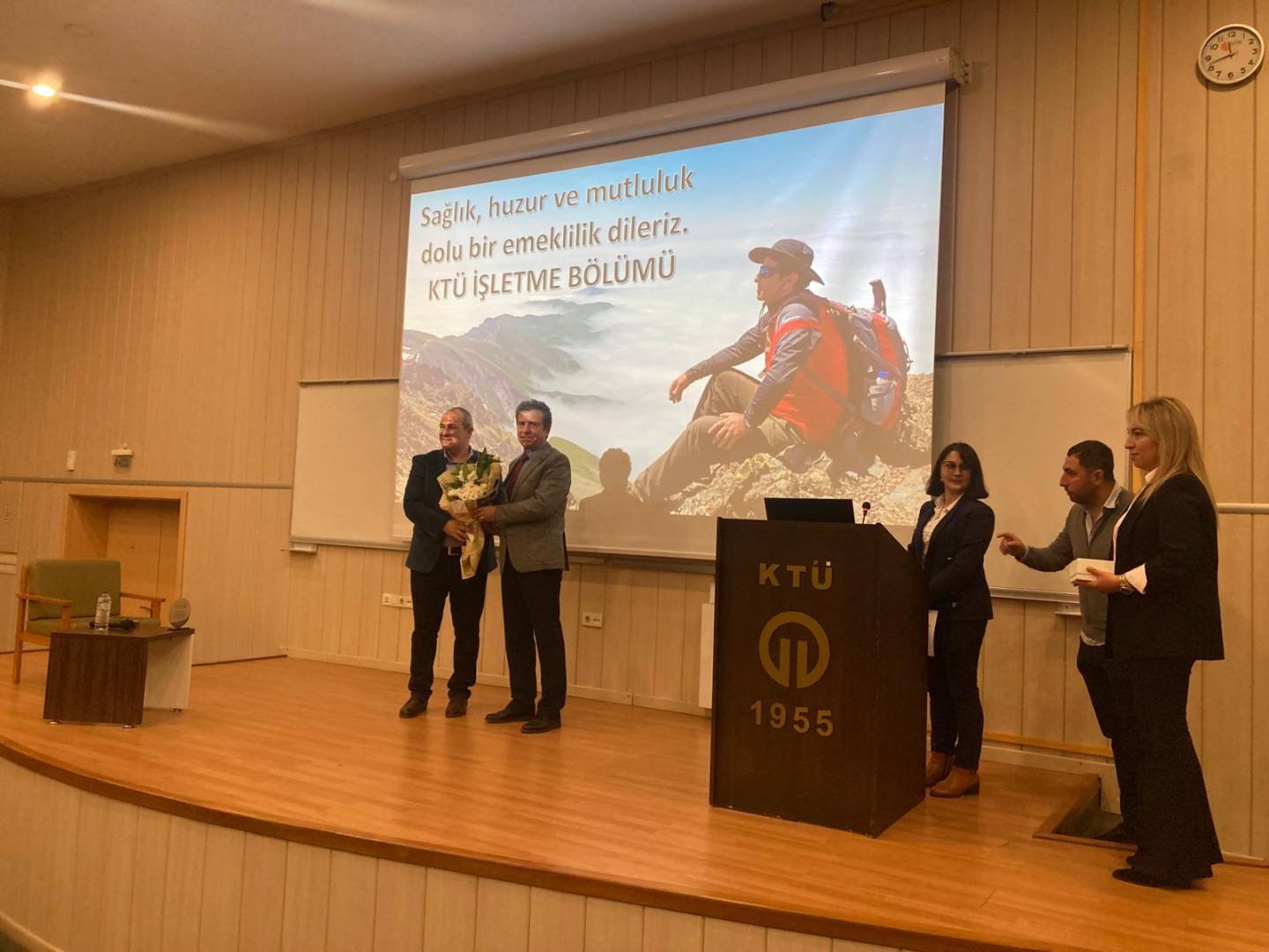 Karadeniz Teknik Üniversitesi İİBF İşletme Bölümü öğretim üyesi Prof. Dr. Mustafa EMİR için Amfi-3'te anlamlı bir veda töreni gerçekleştirilerek emekliliği tebrik edildi.