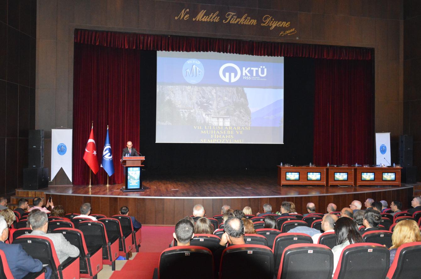 VII. Uluslararası Muhasebe ve Finans Sempozyumu KTÜ İİBF ev sahipliğinde Prof. Dr. Osman Turan Kültür ve Kongre Merkezi’nde gerçekleşti. Sempozyuma KTÜ Rektörü Prof. Dr. Hamdullah Çuvalcı’nın yanı sıra Sempozyum Düzenleme Kurulu adına; KTÜ Öğretim Üyesi Prof. Dr. Fikret Çankaya, Muhasebe ve Finansman Öğretim Üyeleri Bilim ve Araştırma Derneği (MUFAD) Başkanı Prof. Dr. Ümit Gücenme Gençoğlu, Sempozyum Düzenleme Kurulu ve Bilim Kurul Üyeleri, Muhasebe ve Finans sektör temsilcileri ile çok sayıda davetli katıldı. Sempozyumun açılış konuşmasını gerçekleştiren Rektör Prof. Dr. Hamdullah Çuvalcı, bu tür programların akademik kaynaşmayı sağladığını ve genç araştırmacılara da imkan tanıdığını ifade etti.
