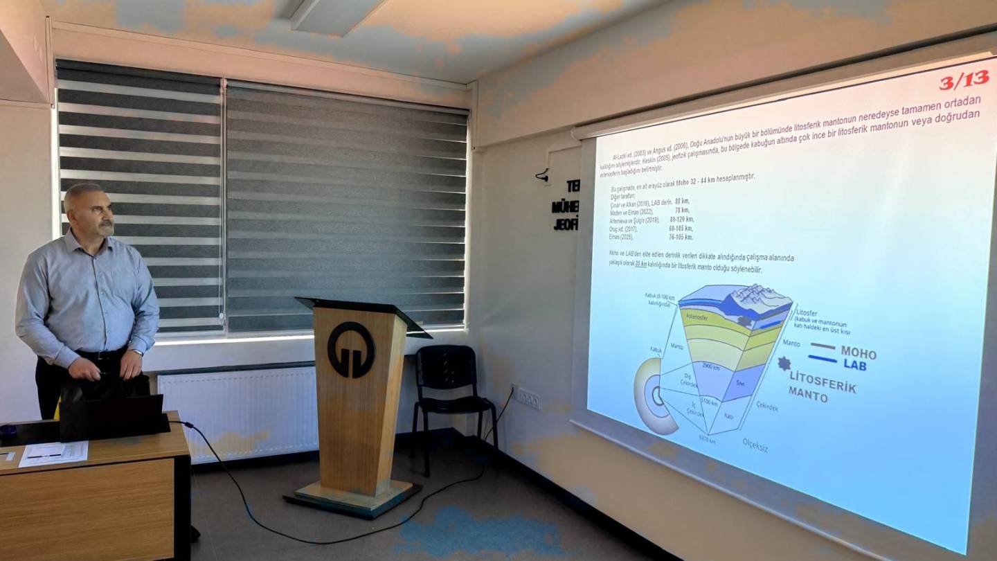 TMMOB Jeofizik Mühendisleri Odası Trabzon Şb Bş. Yük. Müh. Kürşad Bekar tarafından "Jeofizik Elektrik Yöntemler ve Jeoloji ile İlişkilendirmeler" isimli seminer verilmiştir.