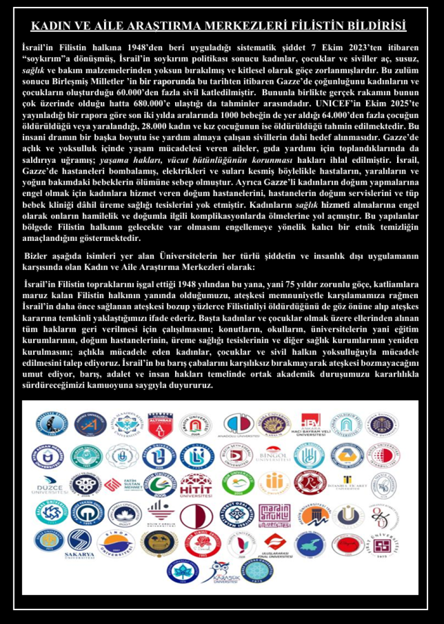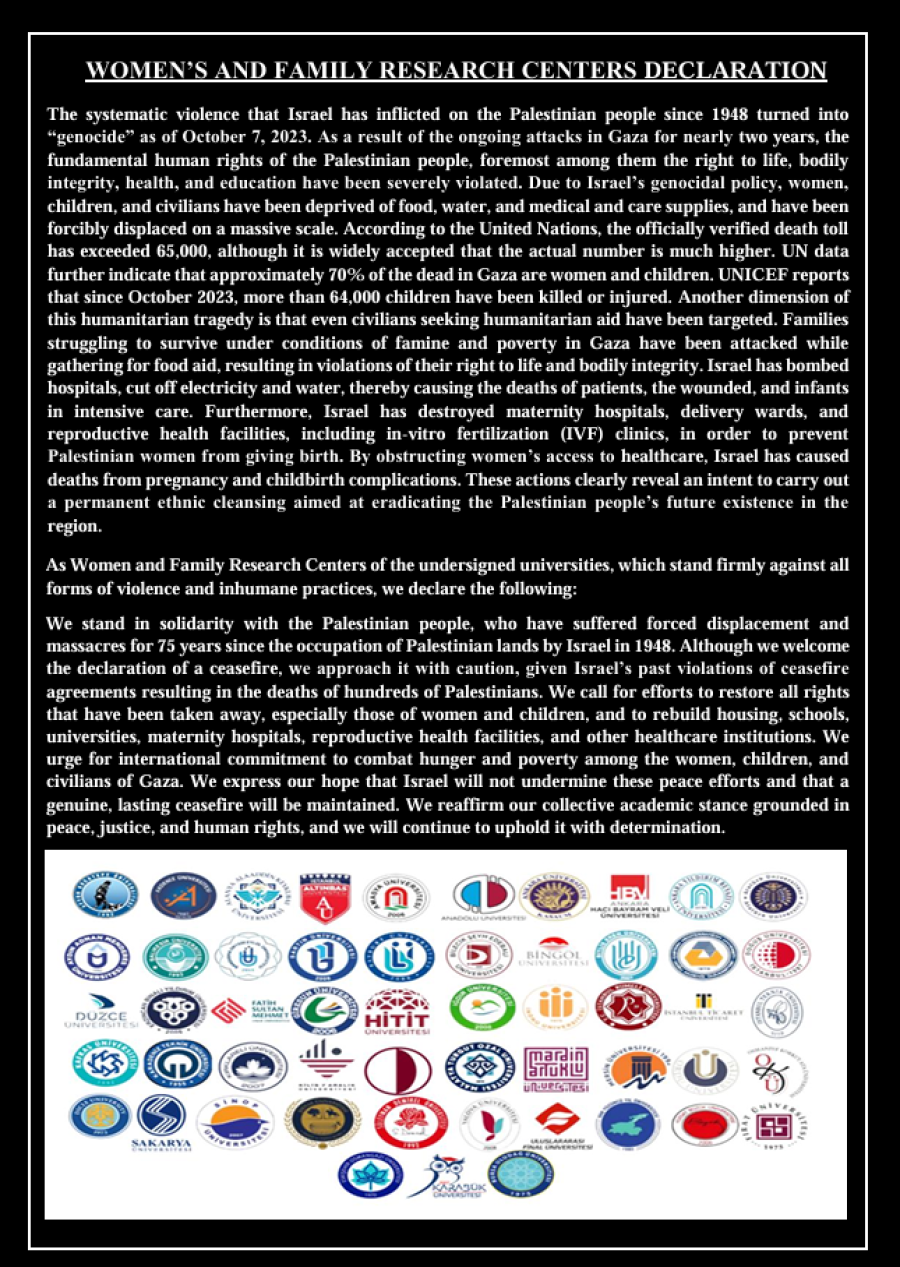 Kadın ve Aile Araştırma Merkezleri Filistin Bildirisi