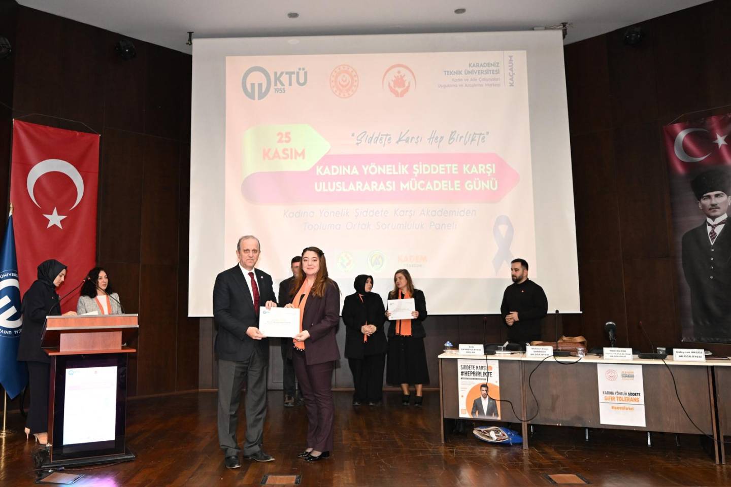 Karadeniz Teknik Üniversitesi Kadın ve Aile Çalışmaları Uygulama ve Araştırma Merkezi (KAÇAUM), Aile ve Sosyal Hizmetler İl Müdürlüğü, Trabzon Üniversitesi, Avrasya Üniversitesi ve Kadın ve Demokrasi Derneği (KADEM) paydaşlığında; 25-26-27 Kasım Kadına Yönelik Şiddete Karşı Uluslararası Mücadele Günü kapsamında üç günlük panel serisi düzenlendi. “Kadına Yönelik Şiddete Karşı Akademiden Topluma Ortak Sorumluluk” temalı paneller, üç farklı üniversitede gerçekleştirilerek geniş bir katılımcı kitlesiyle buluştu.