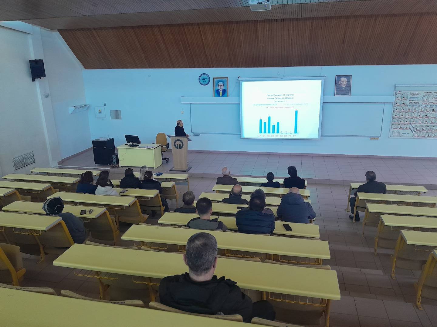 "İç Kontrol Eylem Planı izleme ve değerlendirme toplantısı sayısı" kapsamında Bölümümüzde 17 Mart 2026 tarihinde saat 12.00’de SRA Amfisinde, 2025-2026 Eğitim-Öğretim Yılı Güz Yarıyılına ilişkin Akademik Bölüm Kurulu Toplantısı gerçekleştirildi. Toplantı, Bölüm Başkanımız Prof. Dr. Sedat Keleş'in açılış konuşmasıyla başladı. Açılışta, geride bırakılan yarıyılın genel değerlendirmesine yer verilirken, bölümün akademik hedefleri, eğitim kalitesinin sürdürülebilirliği ve kurumsal gelişim perspektifleri vurgulandı.