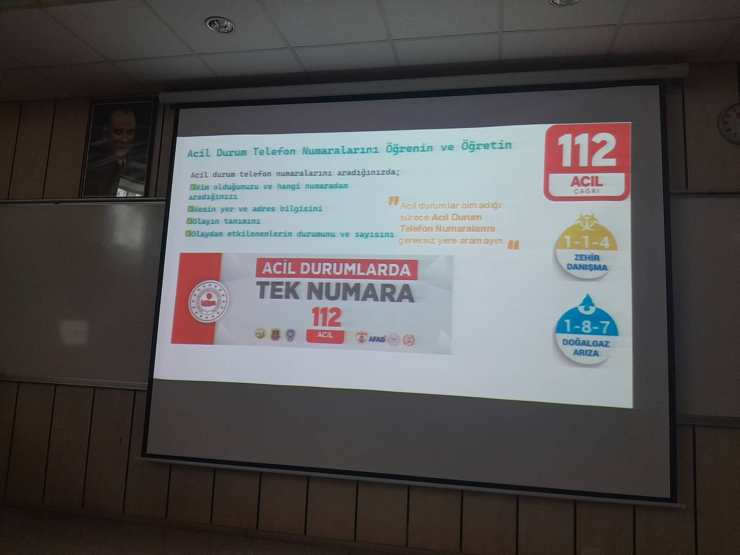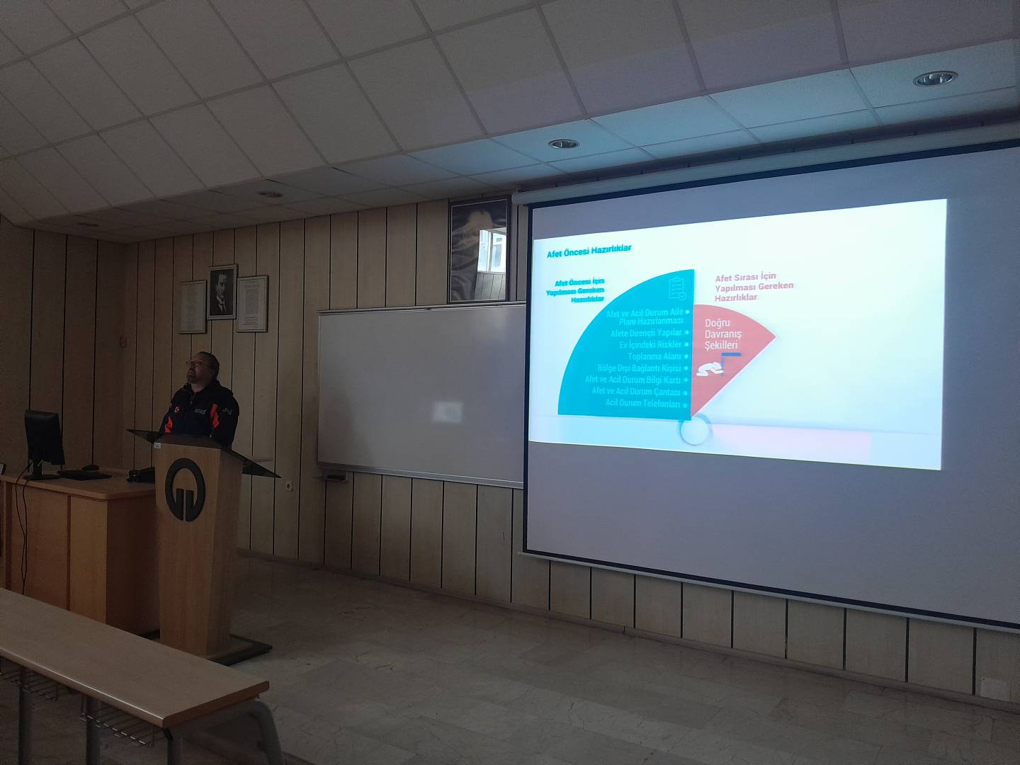 04 Mart 2026 tarihinde saat 15.00’te KKA Amfiinde düzenlenen etkinlikte, afet öncesinde, afet sırasında ve afet sonrasında yapılması gerekenler ele alındı. Programda ayrıca toplumda yaygın olarak bilinen yanlış uygulamalar ve doğru afet davranışları üzerine bilgilendirme yapıldı. Afetlere karşı bilinçli olmanın hayati önem taşıdığı vurgulanan eğitimde, hazırlıklı olmanın bireysel ve toplumsal sorumluluk olduğu ifade edildi.