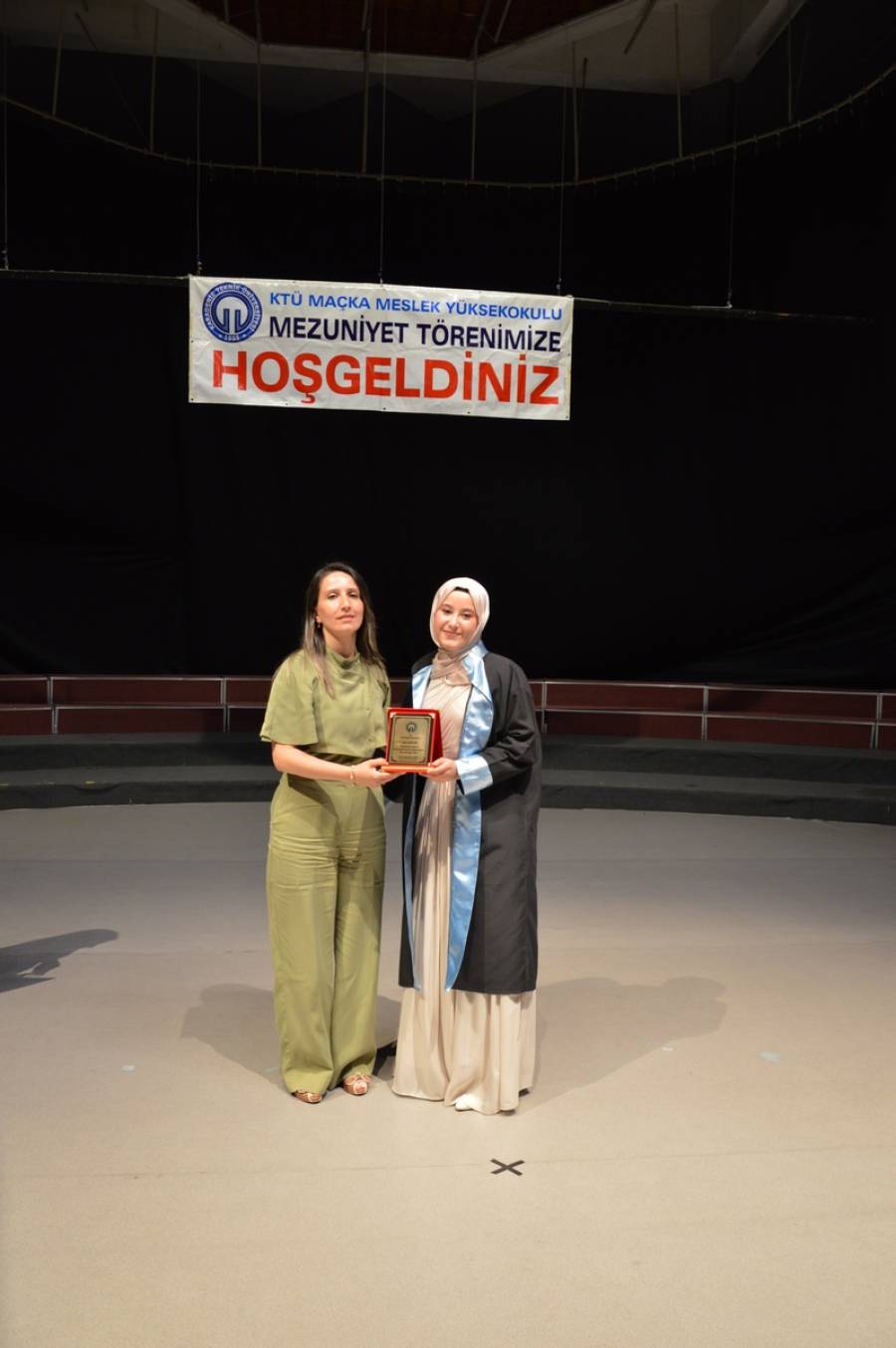 Maçka Meslek Yüksekokulu 2024-2025 Eğitim Öğretim yılı, 27. Dönem Mezuniyet Töreni 13 Haziran 2025 tarihinde KTÜ Merkez Kanuni Yerleşkesi Atatürk Kültür Merkezi Hasan SAKA salonunda, Maçka Belediye Başkanı Dr. Ecz. Koray KOÇHAN, KTÜ Rektör yardımcısı Prof. Dr. Ömer Faruk URSAVAŞ, Maçka İlçe Emniyet Müdür vekili Naci SESLİ, Yüksekokulumuz Öğretim Elemanları, veliler ve öğrencilerin katılımıyla coşku ile kutlandı. Törende Meslek Yüksekokul birincisi Sude BAYRAM, Meslek Yüksekokulu Müdürü Prof. Dr. Volkan Numan BULUT ve Karadeniz Teknik Üniversitesi Rektör vekili Prof. Dr. Ömer Faruk URSAVAŞ ve Maçka Belediye Başkanı Dr. Ecz. Koray KOÇHAN yaptıkları konuşmalarıyla duygu ve düşüncelerini bildirdi. Konuşmaların devamında dereceye giren öğrencilere çeşitli hediye ve ödüller verildi. Maçka Belediye Başkanının program birincilerine altın hediyesinin takdiminin ardından Mezuniyet Yaş Kütüğüne isim çakılması ve geleneksel mezuniyet andının okunmasından sonra mezuniyet töreni kep atma ile sonlandı.
