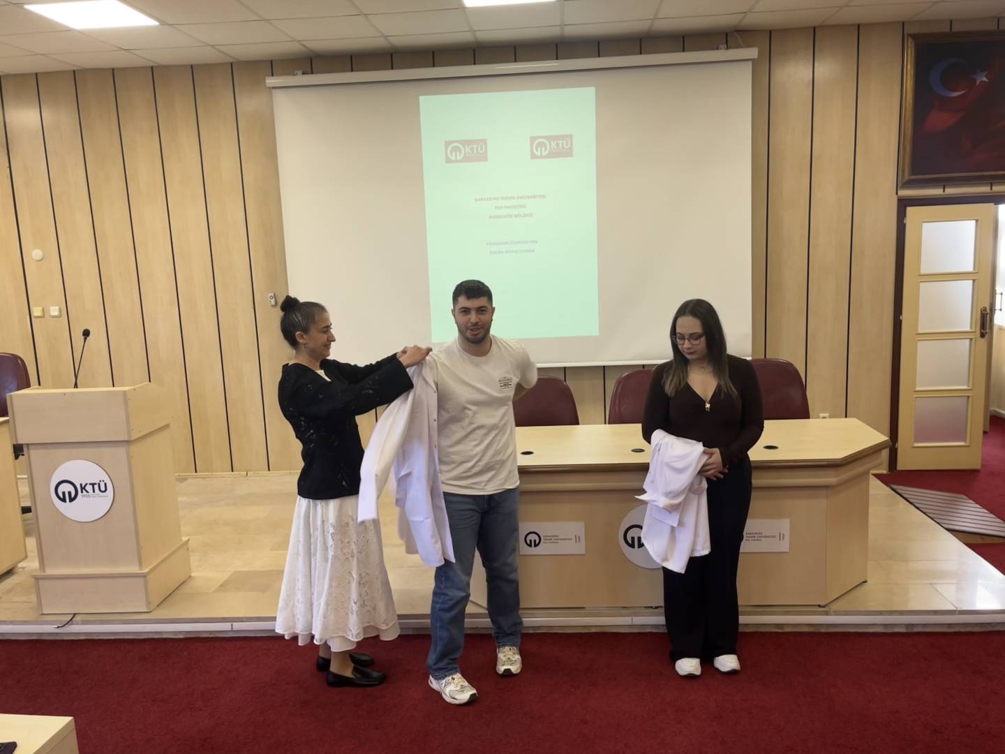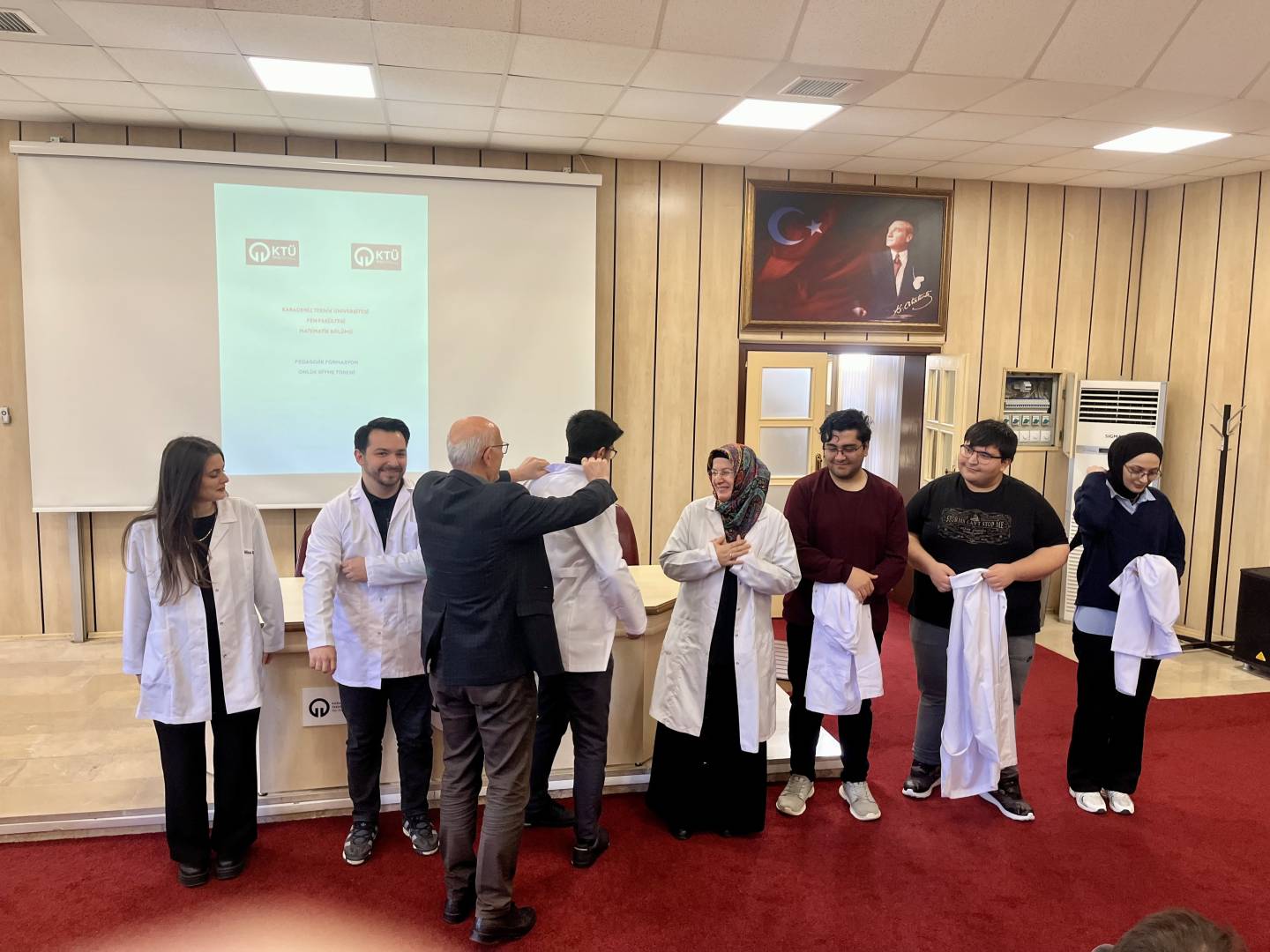Bölümümüz öğretim üyeleri ve pedagojik formasyon öğrencilerimizin bir araya geldiği "2026 Yılı Pedagojik Formasyon Beyaz Önlük Giyme Töreni" 5 Mart 2026 tarihinde Fakültemiz Nazım Terzioğlu Amfisinde gerçekleştirildi. Yapılan törende öğrencilerimiz profesyonel hayatları öncesinde mesleğimizin de önemli bir sembolü olan beyaz önlüklerini akademik danışmanlarının eşliğinde giymenin heyecan ve gururunu yaşadılar.