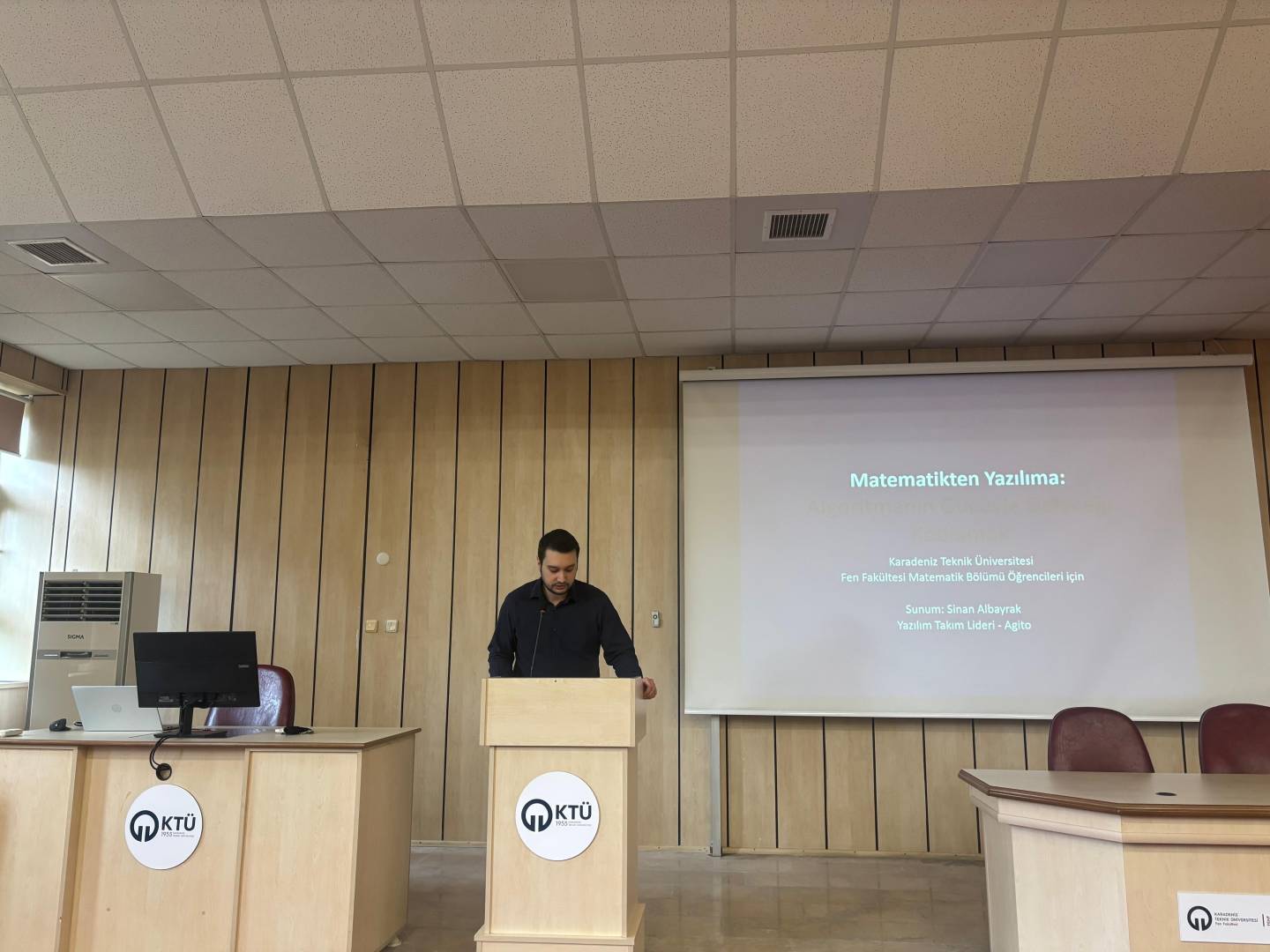 Mezun ilişkileri yönetiminin güçlendirilmesi; öğrencilerimizin istihdam olanaklarının artırılması, kariyer gelişimlerinin desteklenmesi ve kişisel gelişimlerine katkı sağlanması amacıyla planlanan etkinlikler kapsamında bölümümüz mezunlarından Sinan Albayrak tarafından 2 Mart 2026 Pazartesi günü Fakültemiz Nazım Terzioğlu Amfisinde saat 11:30'da Matematikten Yazılıma: Algoritmanın Gücü ile Geleceği Kodlamak başlıklı etkinlik gerçekleştirildi.