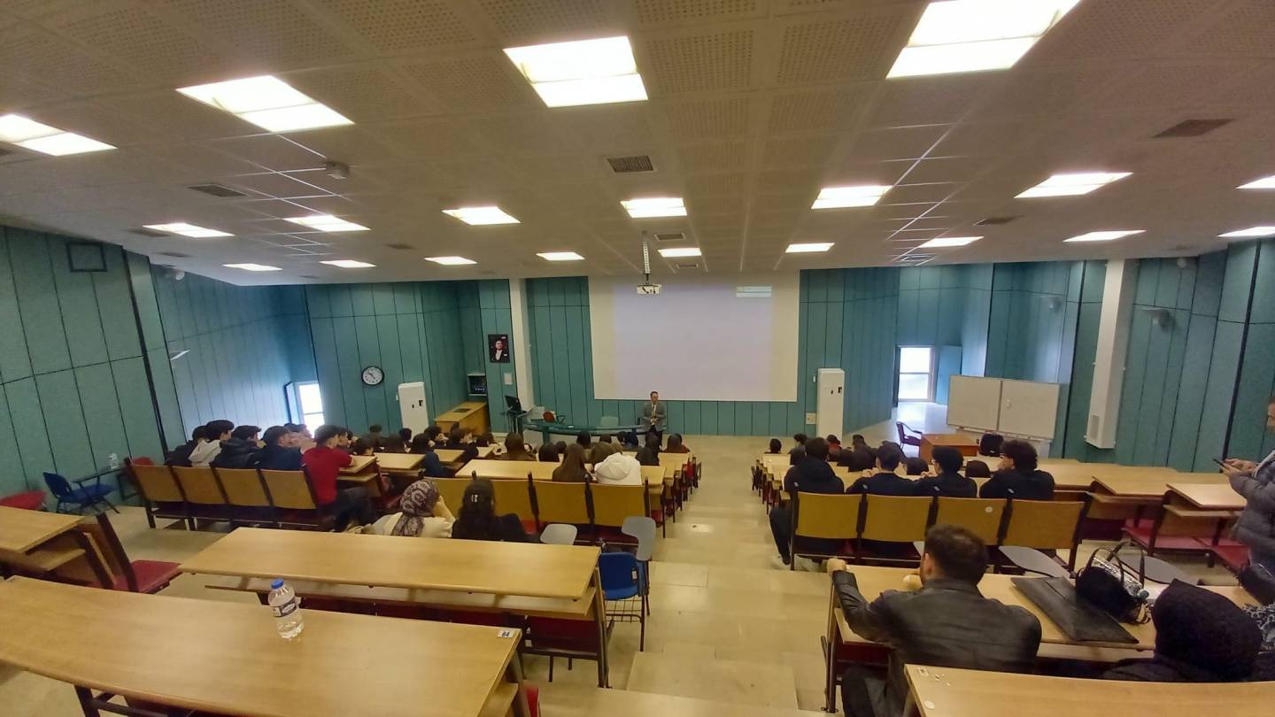 Ziyaret kapsamında, Dr. Öğr. Üyesi Ali Faruk ÖZYAŞAR tarafından Fakültemizin tanıtımı gerçekleştirildi. Öğrencilere eğitim-öğretim faaliyetlerimiz ve fakültemizin sunduğu olanaklar hakkında bilgi verildi. Ziyaret süresince öğrenciler, üniversite yaşamı ve akademik süreçler hakkında merak ettikleri soruları yöneltme fırsatı buldular. Etkinlik, samimi ve verimli bir atmosferde tamamlandı.