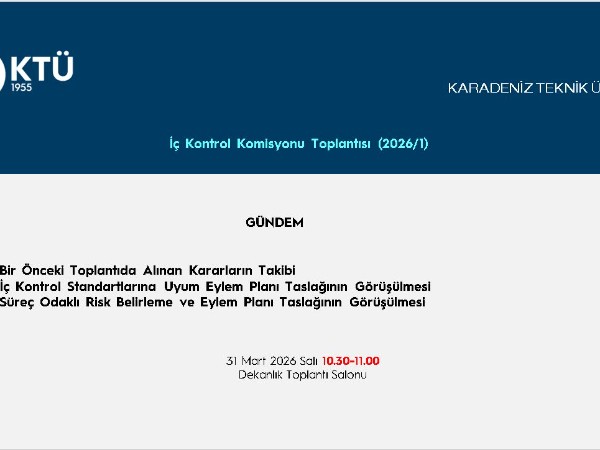 Toplantıda, 2026 yılı İç Kontrol Standartlarına Uyum Eylem Planı ile Süreç Odaklı Risk Belirleme çalışmaları ele alındı.
