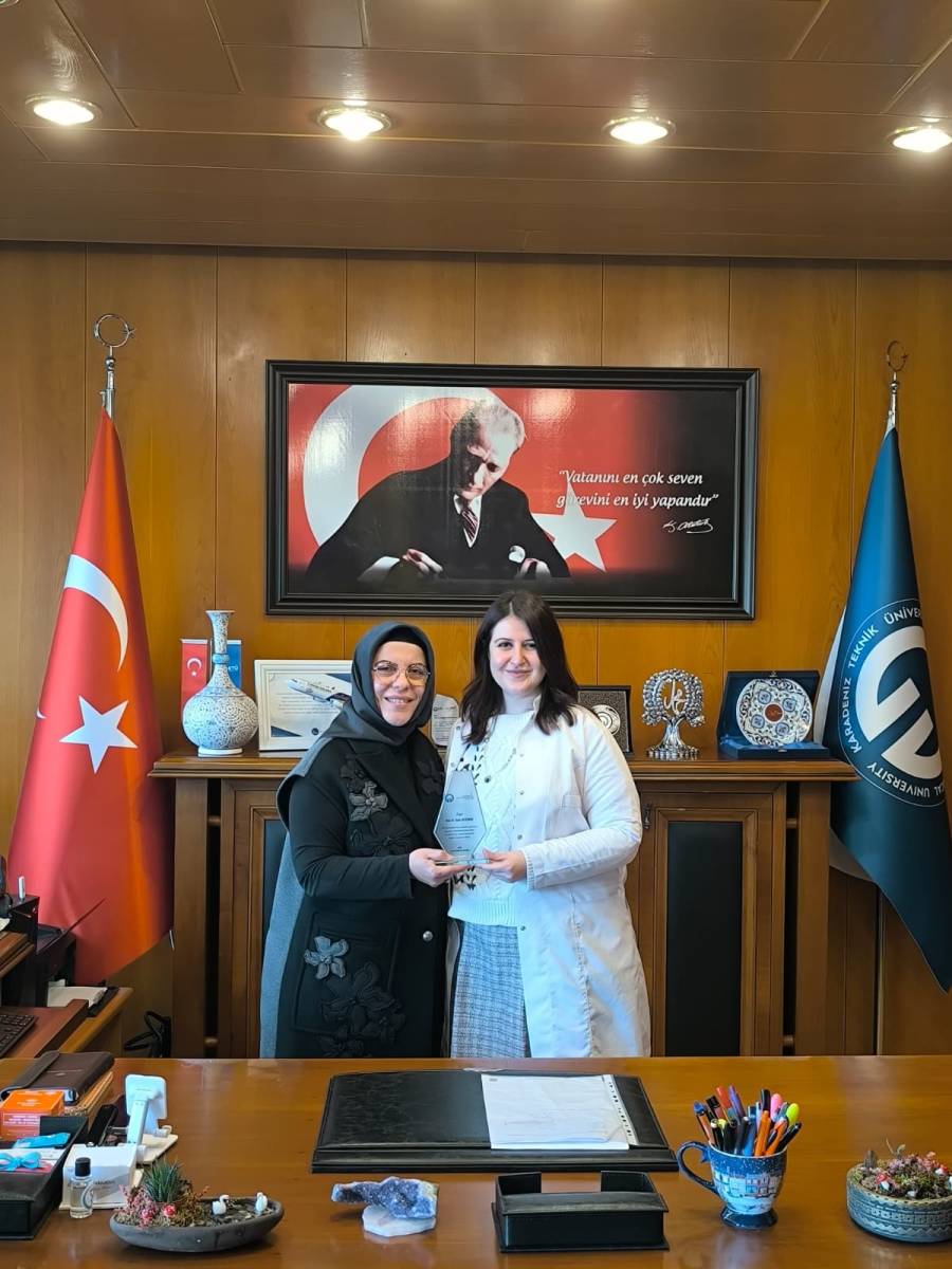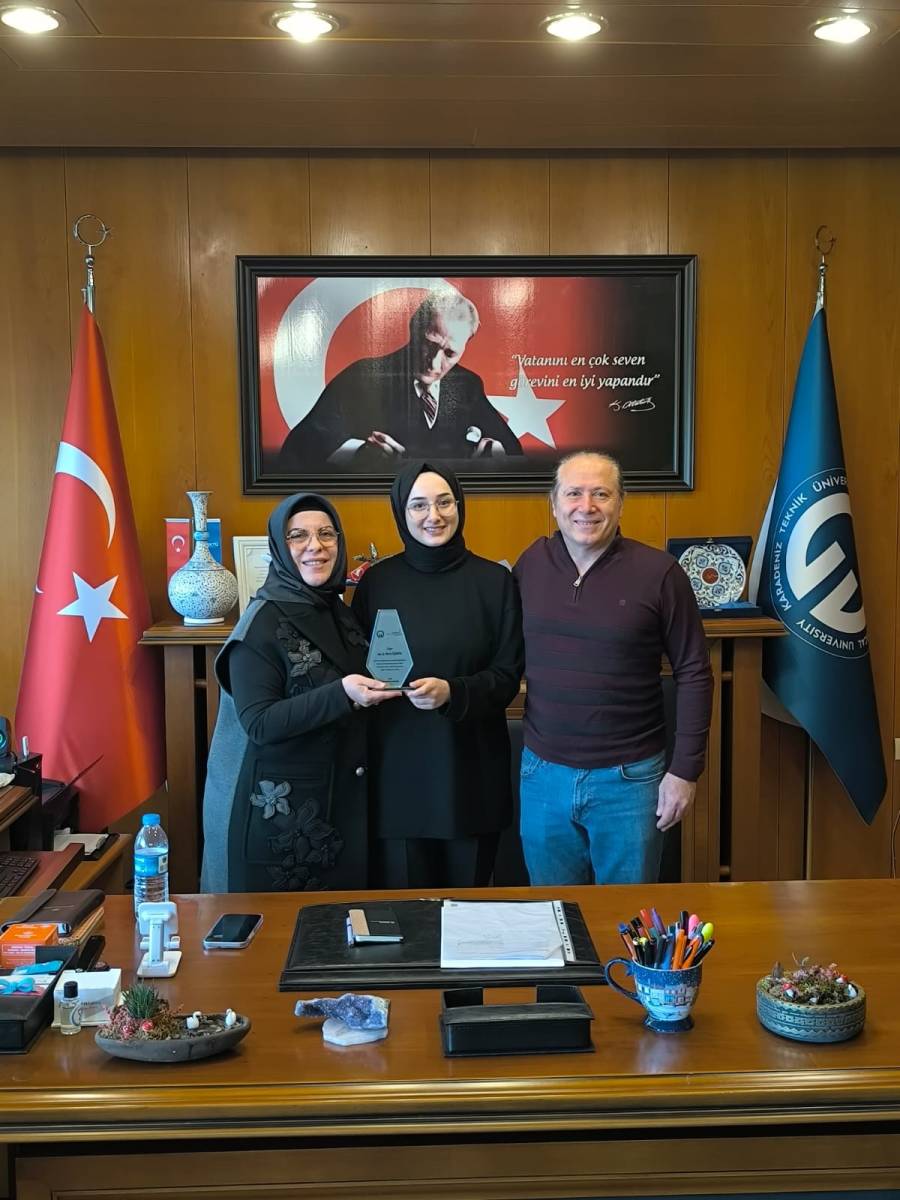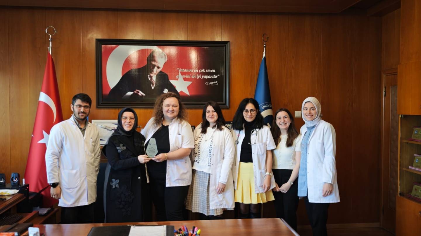 Fakültemizde uzmanlık eğitimlerini tamamlayan Mikrobiyoloji Anabilim Dalından Uzm. Dr. Merve ÖZDERYA ve İç Hastalıkları Anabilim Dalından Uzm. Dr. Seda AKDUMAN ile Uzm. Dr. Tuba ERTEKİN'e Dekanımız Prof. Dr. Sevdegül AYDIN MUNGAN tarafından plaketleri takdim edildi.
