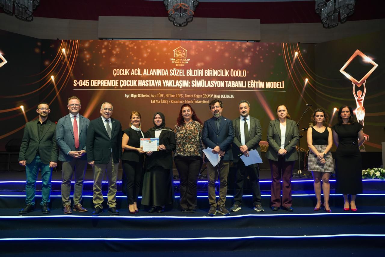 Karadeniz Teknik Üniversitesi İyi hekimlik Uygulamaları ve Simülasyon Merkezi (MEDSİM)'nde gerçekleştirilen “Depremde Çocuk Hastaya Yaklaşım: Simülasyon Tabanlı Eğitim Modeli” başlıklı çalışma, alanında prestij sahibi bir organizasyonda ödüle layık görüldü.