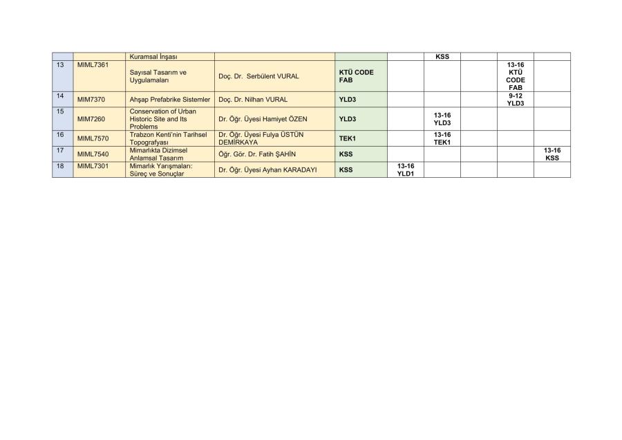 2025-2026 Bahar Yarıyılı Güncellenmiş Lisans Ders Programı