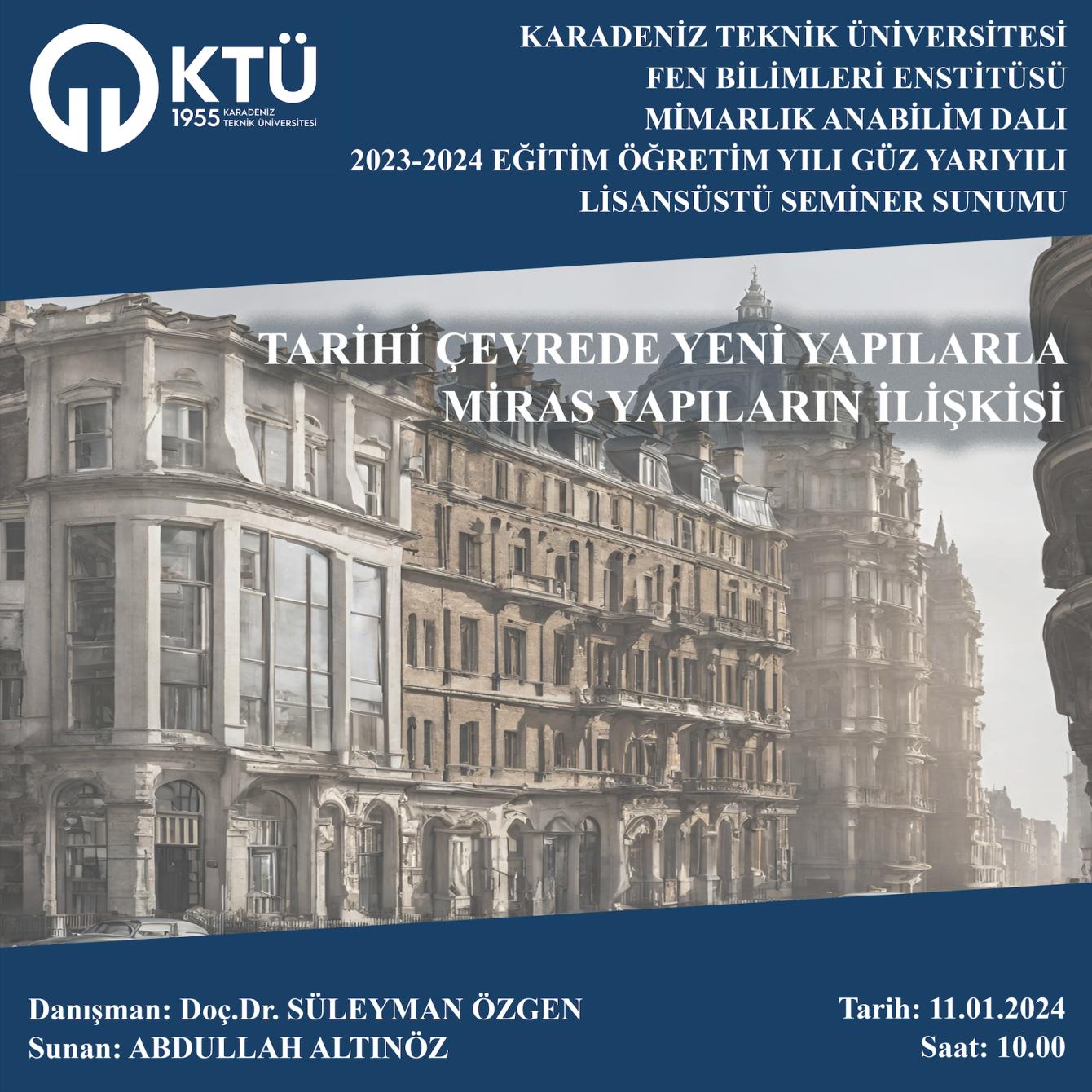 KTÜ Mimarlık Bölümü 2025-2026 Güz Yarıyılı Seminer Programı Açıklandı