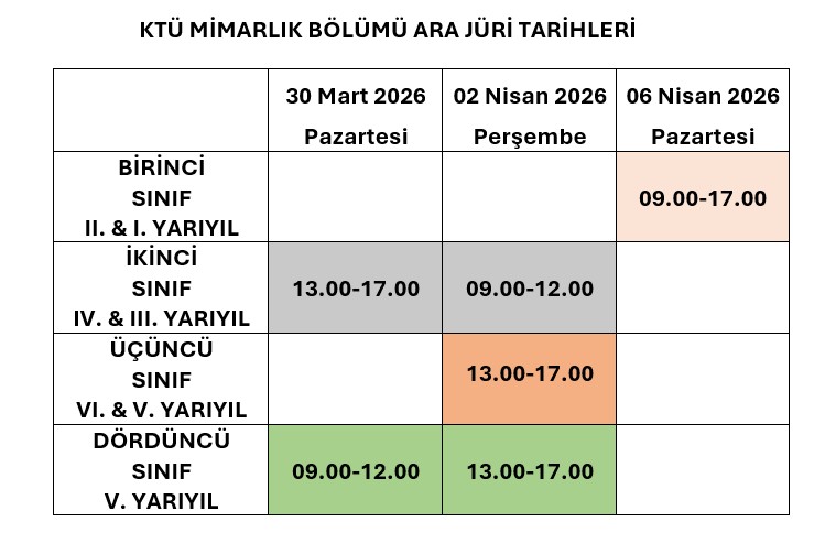 Mimari Proje ara jüri tarihleri belirlenmiştir.