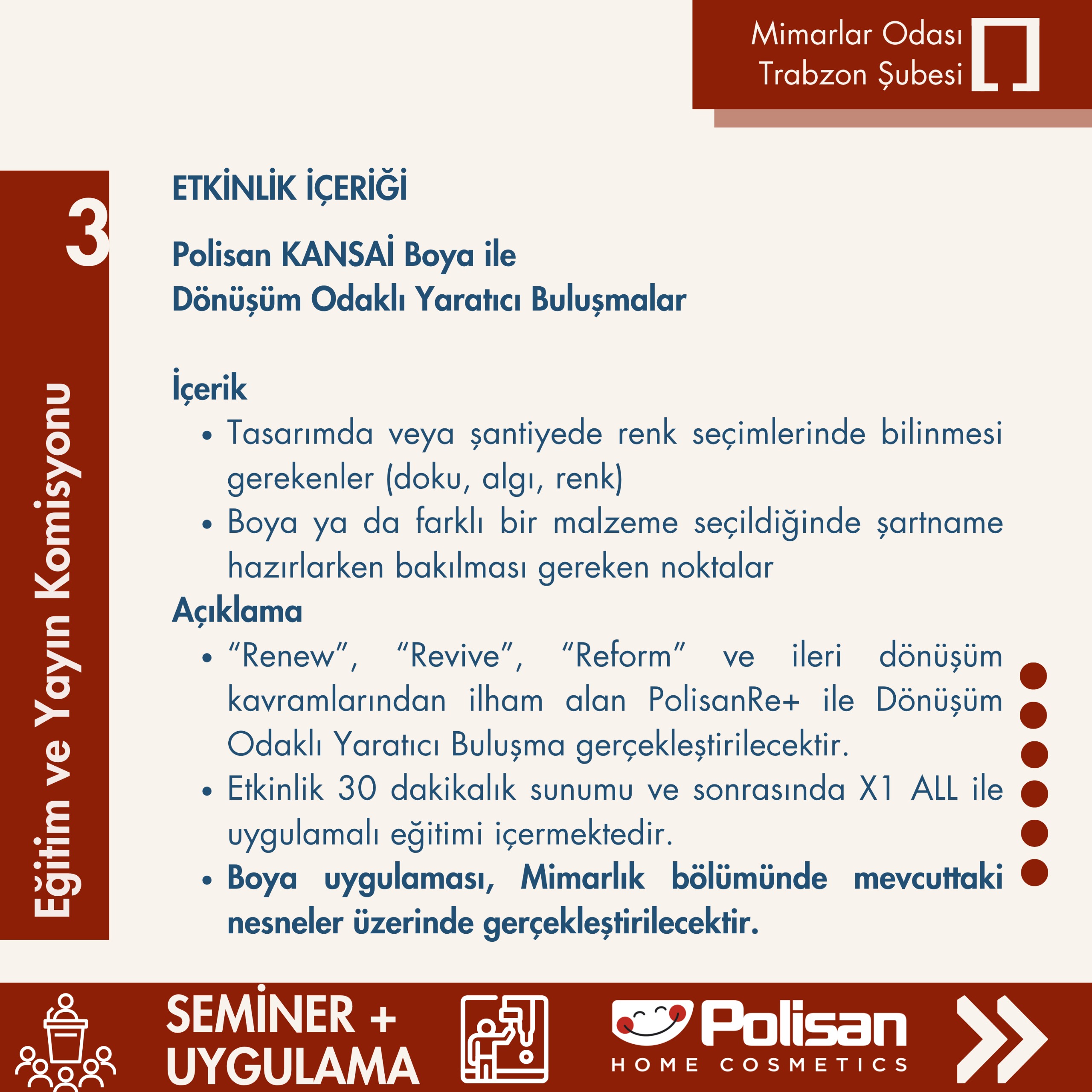 Polisan KANSAİ Boya ile “Dönüşüm Odaklı Yaratıcı Buluşmalar”, 5 Kasım Çarşamba günü bölümümüzde yapılacak olan etkinlik ile gerçekleşecektir.