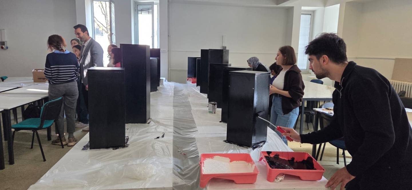 Polisan KANSAİ Boya ile “Dönüşüm Odaklı Yaratıcı Buluşmalar”, 5 Kasım Çarşamba günü bölümümüzde gerçekleştirildi. Etkinlik kapsamında öğrencilerimizi her yüzeye uygulanabilen boyayı deneyimleme fırsatı buldular.