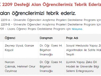 The project carried out by Assoc. Prof. Dr. Muhammet BERİGEL, one of the faculty members of our department, was supported.