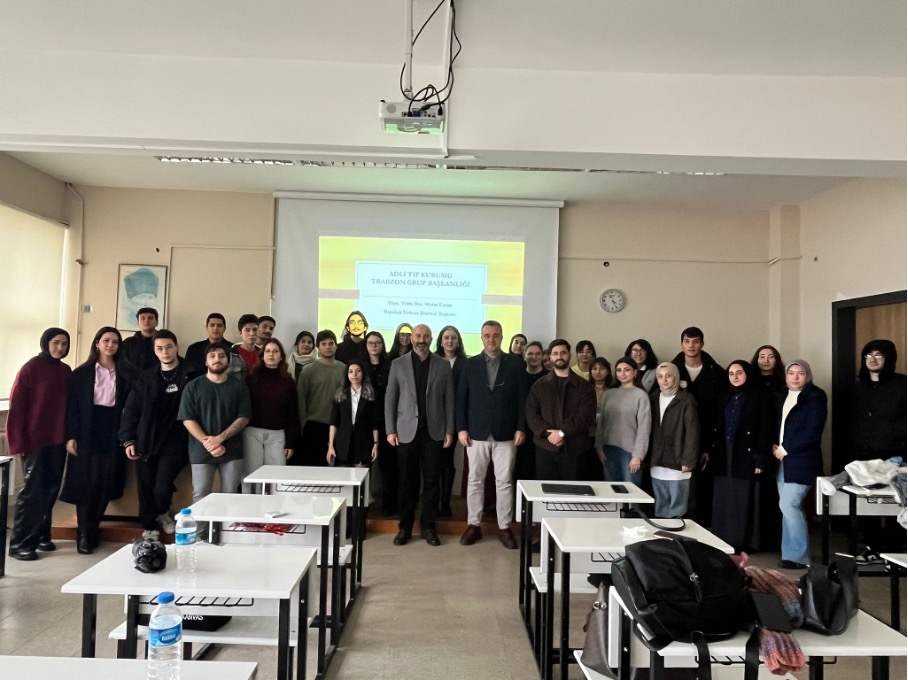 Seminer, Trabzon Adli Tıp Grup Başkanlığı Biyoloji İhtisas Dairesi Başkanı Uzm. Tıbbi Biyolog Murat Ercan tarafından gerçekleştirildi. Etkinlikte, DNA analizlerinin adli vakalardaki rolü, suç soruşturmalarında genetik verilerin kullanımı ve adli biyolojinin uygulama alanları hakkında kapsamlı bilgiler paylaşıldı.