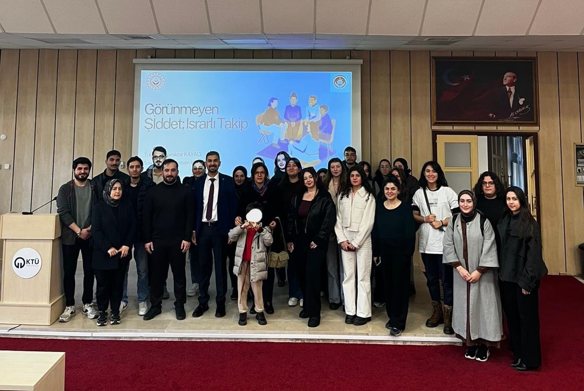 Görünmeyen şiddetin en yaygın ancak çoğu zaman fark edilmesi güç biçimlerinden biri olan ısrarlı takip konusunda farkındalık oluşturmak amacıyla bir seminer düzenlendi. Etkinlik, bölümümüz ile öğrenci kulübümüz KTÜ GEN iş birliğinde gerçekleştirildi.