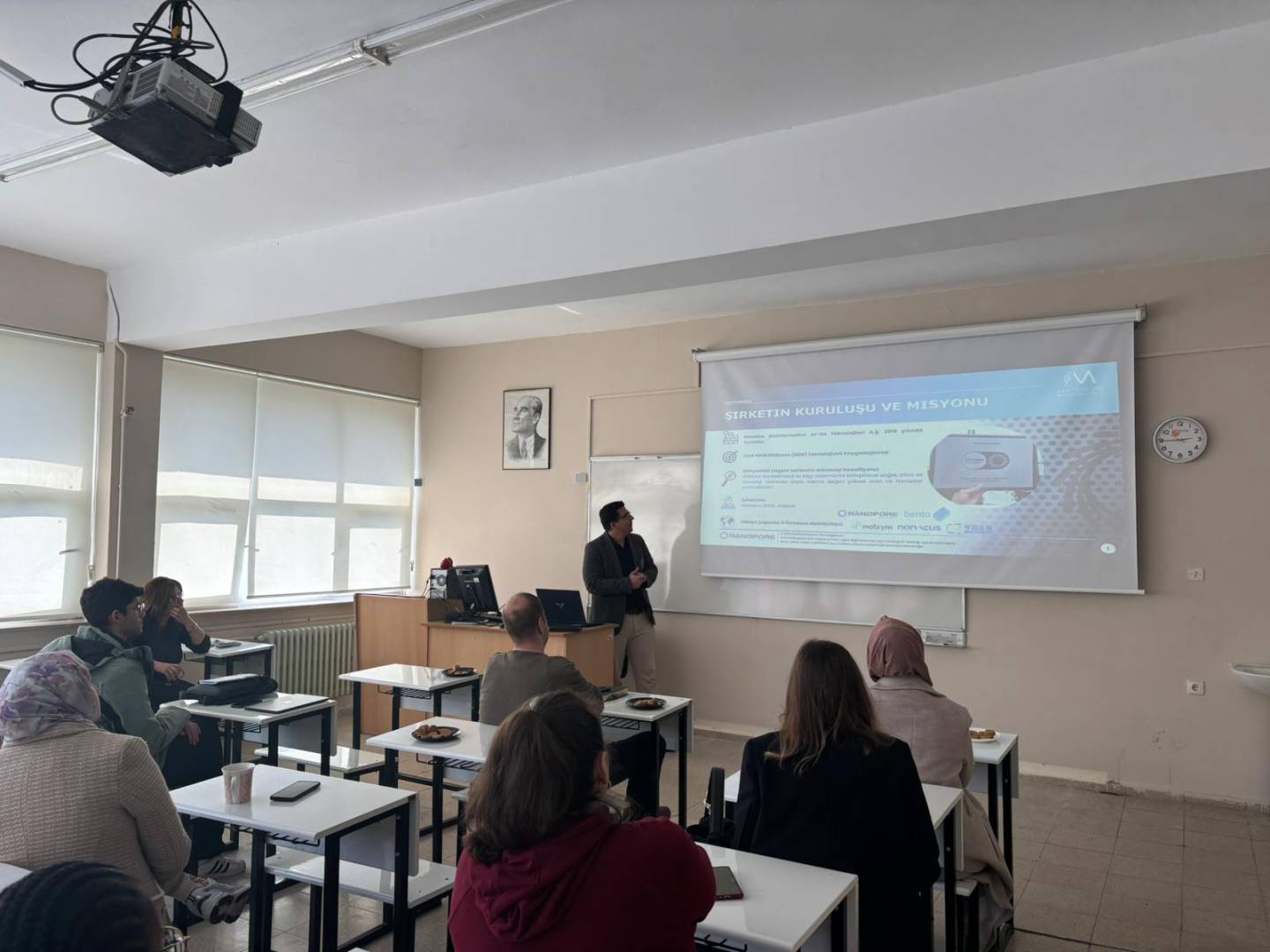 Stratejik planda “A1.H1.2.PG1.2.4- Sektör temsilcilerinin katıldığı ders” kapsamında, MBG1006 kodlu Genel Biyoloji-II dersi çerçevesinde önemli bir seminer gerçekleştirildi. Etkinlikte sektör temsilcisi Mehmet Onur Barut, öğrencilere “Oxford Nanopore teknolojisi” konulu bir sunum yaptı. Seminerde, nanopore dizileme teknolojisinin temel prensipleri, çalışma mekanizması ve genomik araştırmalardaki güncel kullanım alanları ele alındı. Öğrenciler, yeni nesil dizileme teknolojileri hakkında güncel bilgiler edinirken, bu teknolojinin özellikle genom analizi, metagenomik çalışmalar ve klinik uygulamalardaki önemi hakkında kapsamlı bir bakış açısı kazandı.