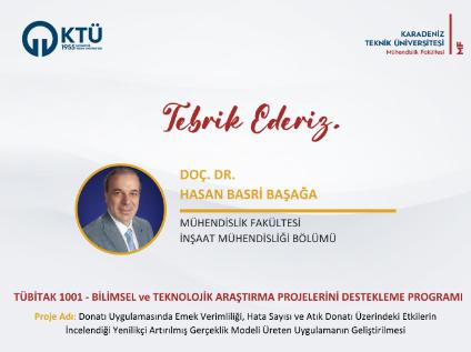 Doç. Dr. Hasan Basri BAŞAĞA'ya TÜBİTAK 1002-A Hızlı Destek Proje Desteği