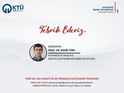 Prof. Dr. Önder AYDEMİR'e TÜBİTAK 1501-Sanayi AR-GE Projeleri Destekleme Programı Desteği