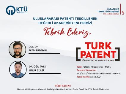 Akademisyenlerimizin Uluslararası Patent Başvurusu Tescillenmiştir