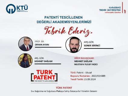 Akademisyenlerimizin Patent Başvurusu Tescillenmiştir