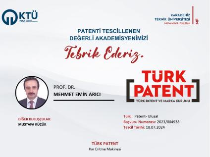 Merhum Doç. Dr. Cevdet DEMİRTAŞ ve Dr. Ali Kemal ÖZCAN'ın Faydalı Model Başvurusu Tescillenmiştir