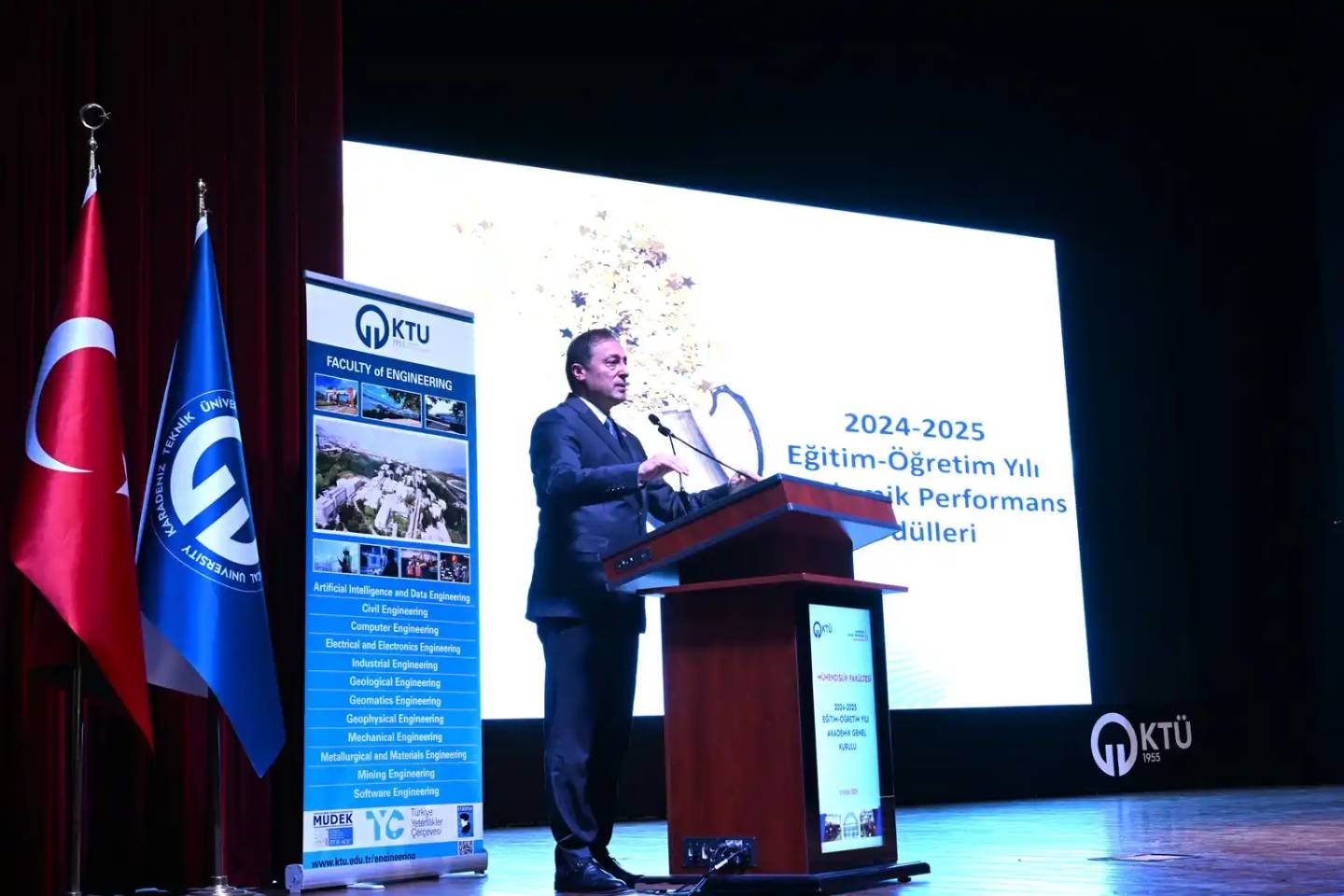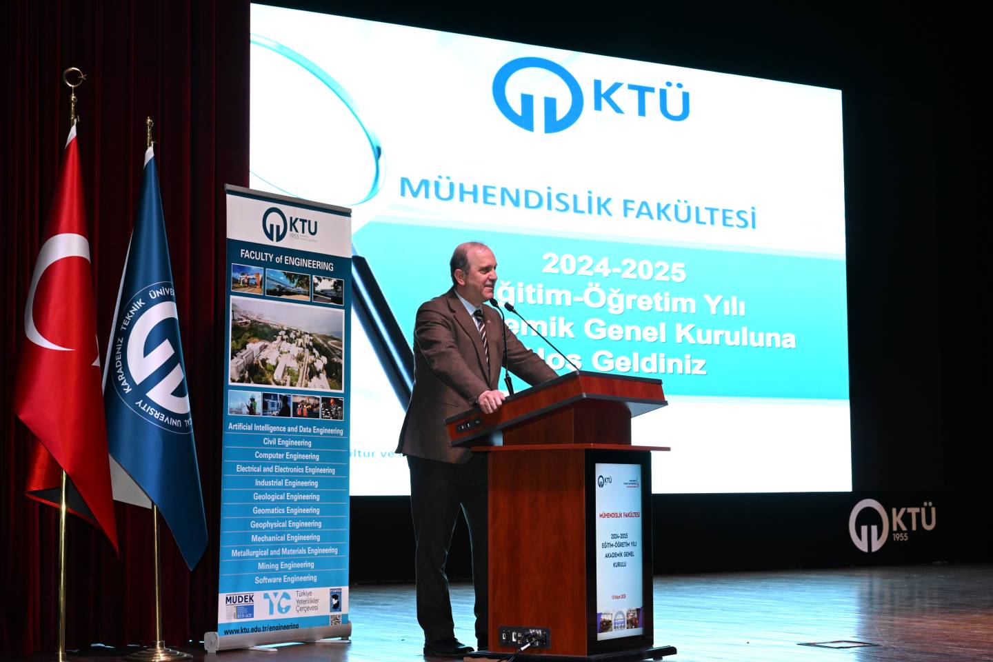 Mühendislik Fakültemizin 2024-2025 Eğitim-Öğretim Yılı Akademik Genel Kurulu, 10 Nisan 2026 tarihinde Prof. Dr. Osman Turan Kültür ve Kongre Merkezi’nde Dekanımızın açılış konuşmaları başlangıcı ile geniş katılımla gerçekleştirildi. Akademik ve idari faaliyetlerin kapsamlı biçimde değerlendirildiği toplantıda, yıl boyunca elde edilen bilimsel başarılar ve kurumsal gelişmeler kamuoyuyla paylaşıldı.