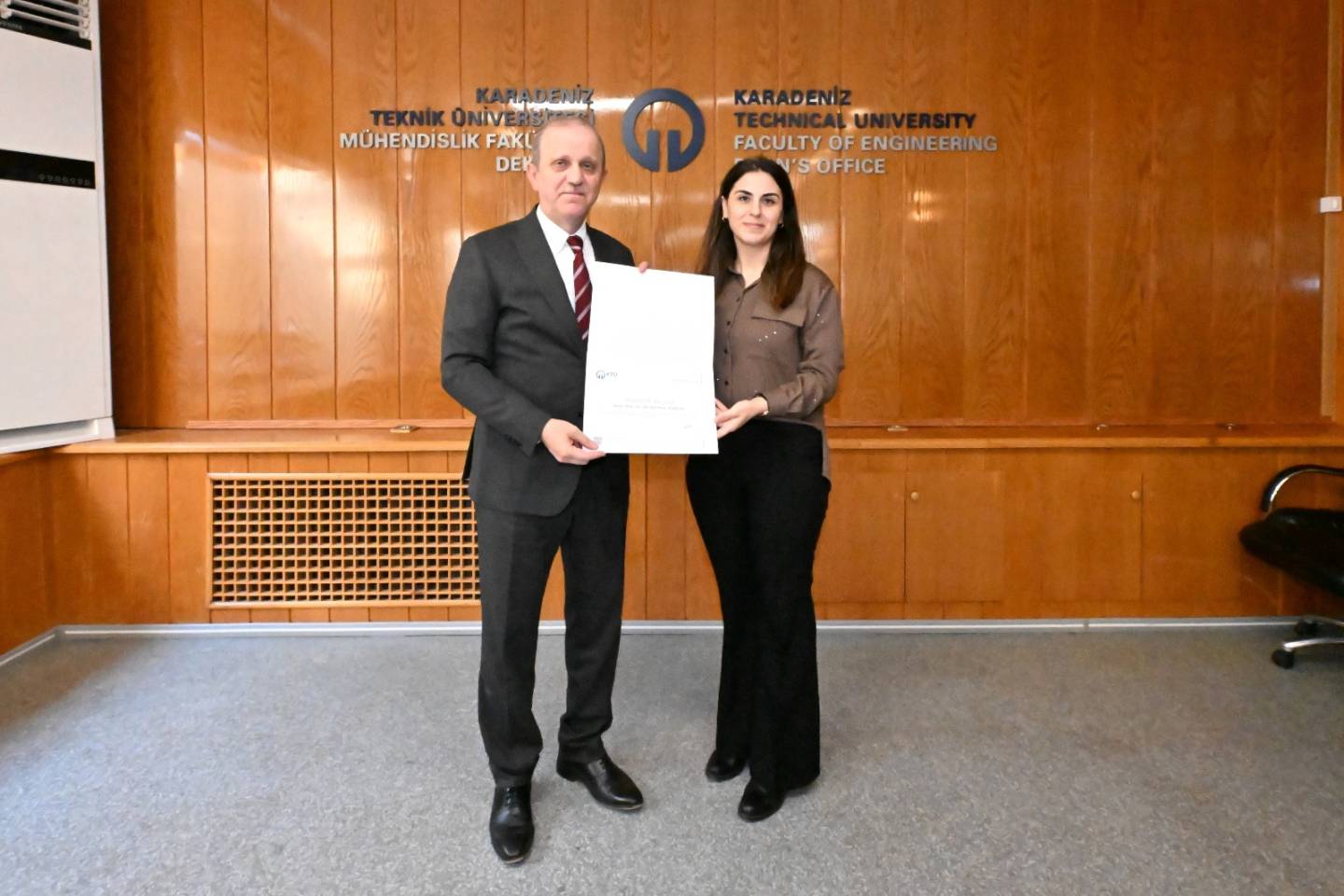 Doç. Dr. Selen AYAS'a, tescil edilen patenti dolayısıyla teşekkür belgesi takdim edildi.