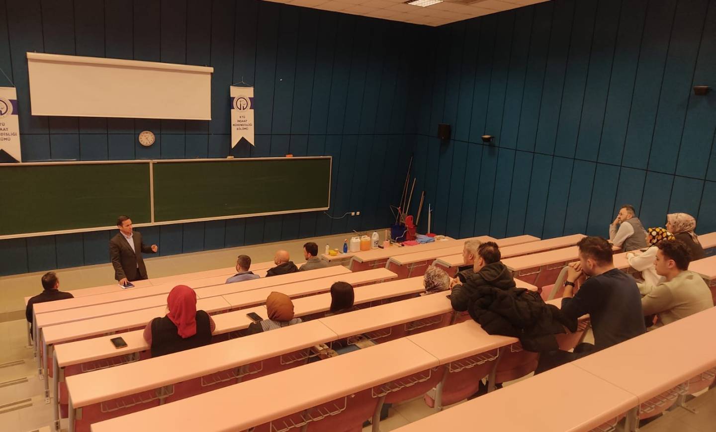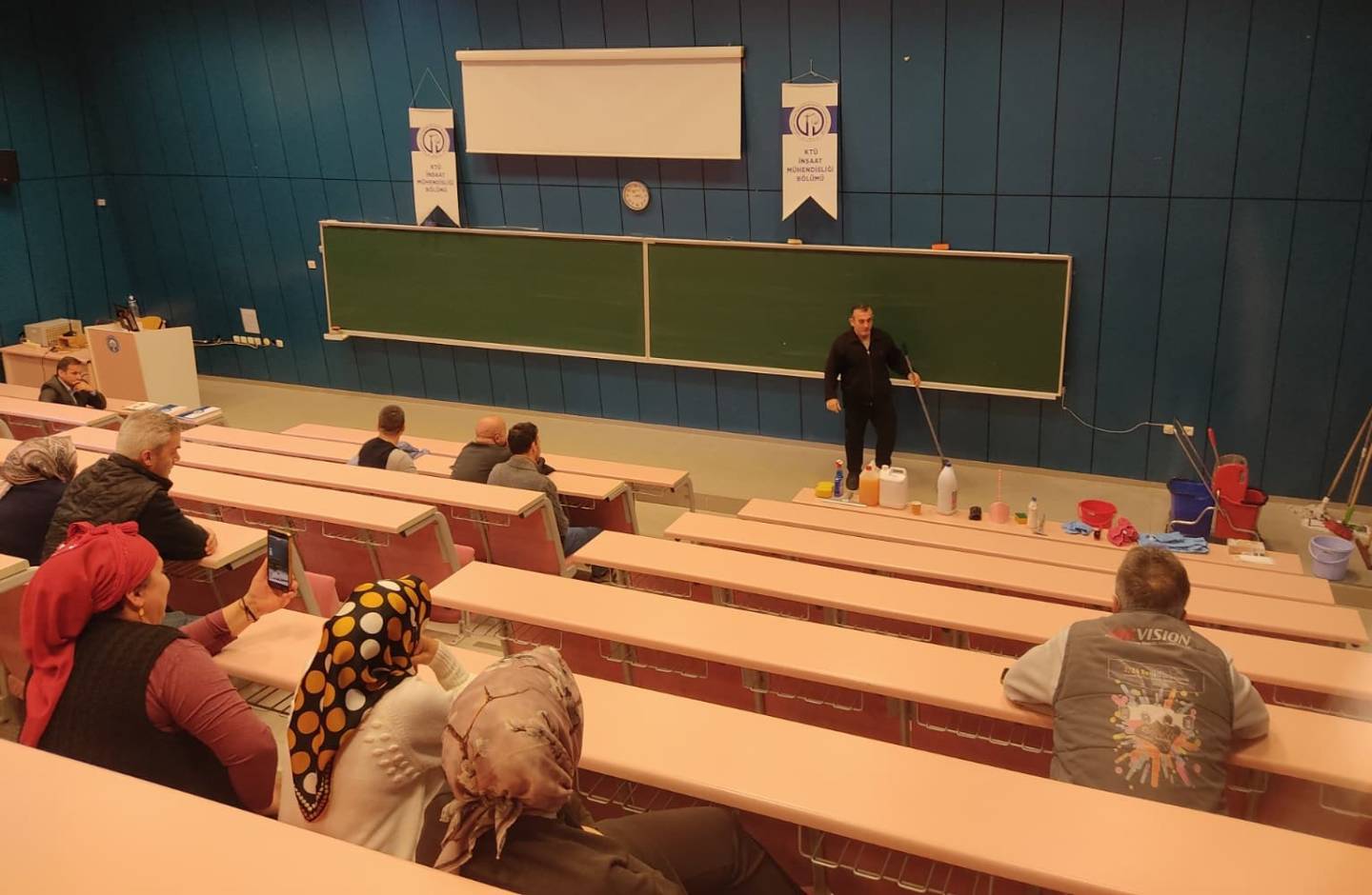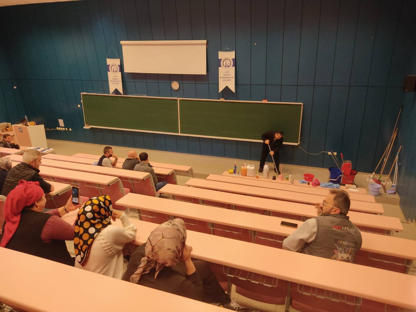 Etkinlik öncesinde Dekan Yardımcılarımız Fakültemizde Yürütülen KYS süreçlerinin temizlik hizmetleri ile olan bağlantısı ve temizliğin yapılması ile ilgili kurallar (Mekan Temizlil Talimatı: MF-TL-11), planlama, personelin uyması gereken kurallar ve iş sağlığı ve güvenliği konularında bilgiler sundular.