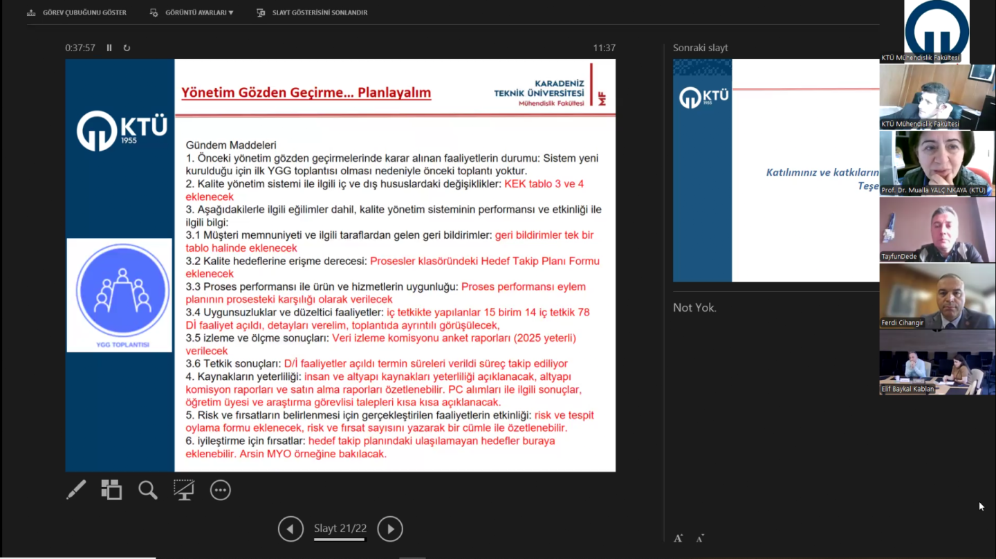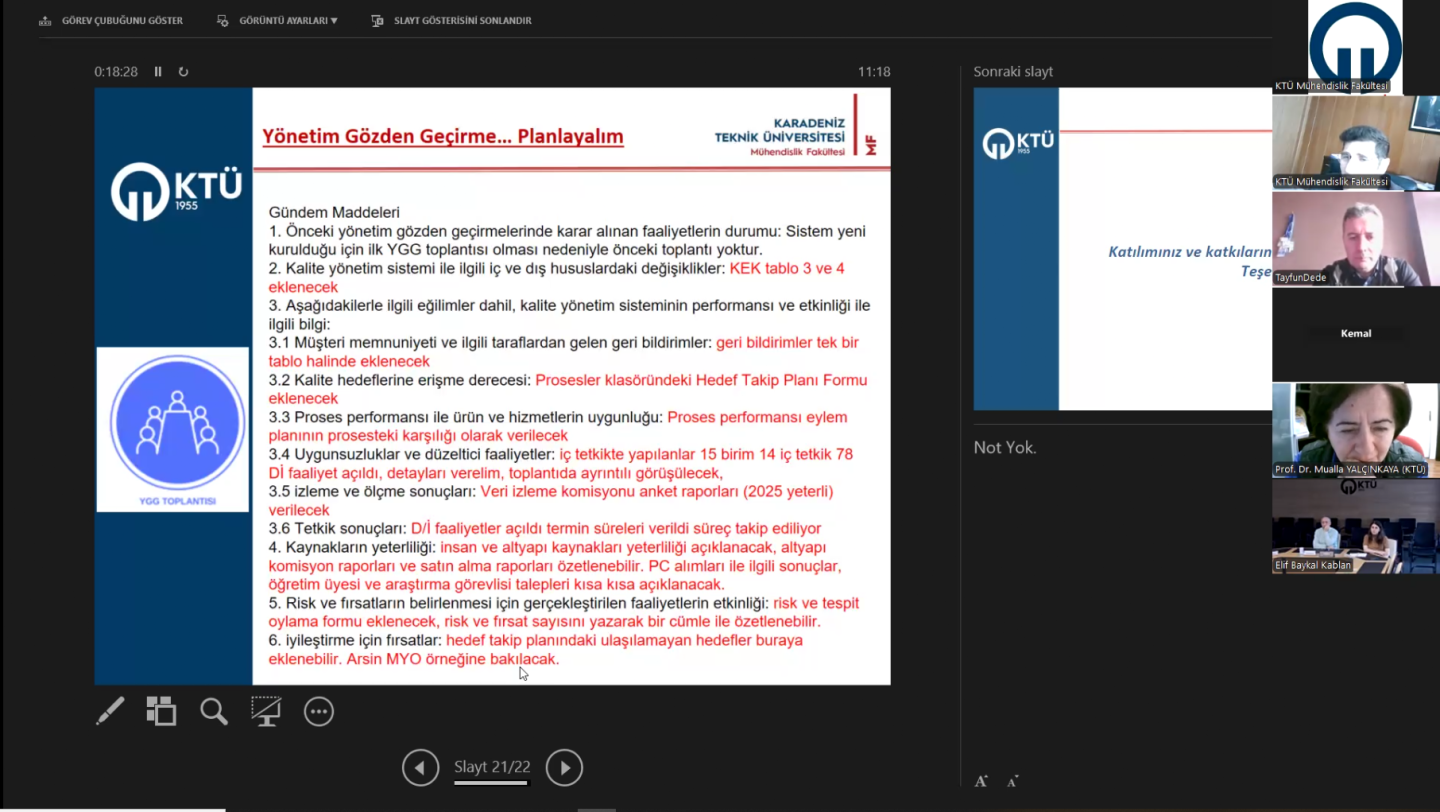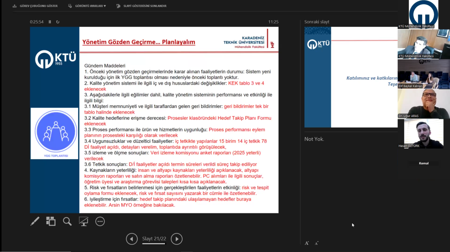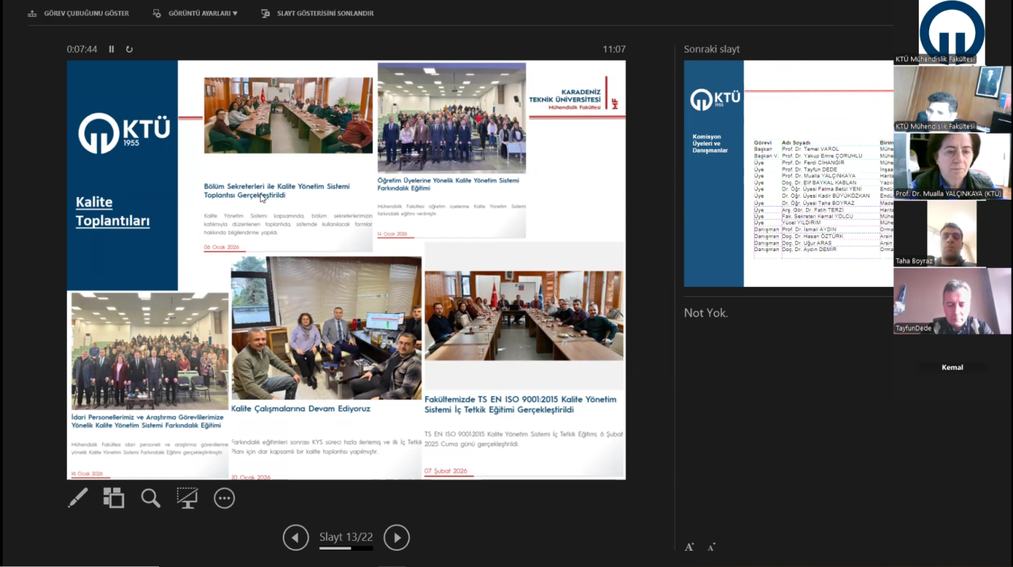 Fakültemizin Kalite Yönetim Sistemi (KYS) Kuruluşu Çalışmalarında 12 Bölüm Ve Dekanlık İç Tetkikleri Tamamlandı