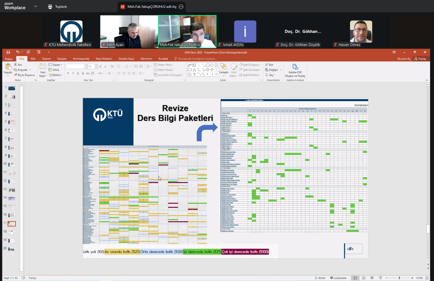 Toplantıda, modülün işleyişi, kullanım esasları ve sağladığı yenilikler hakkında detaylı bilgiler paylaşıldı. Fakültemizin 10 bölümünde yürütülen 12 lisans programının akreditasyon başvurularında aktif olarak kullanılan AİM’in, üniversite genelinde kalite güvencesi süreçlerine önemli katkı sunması beklenmektedir.