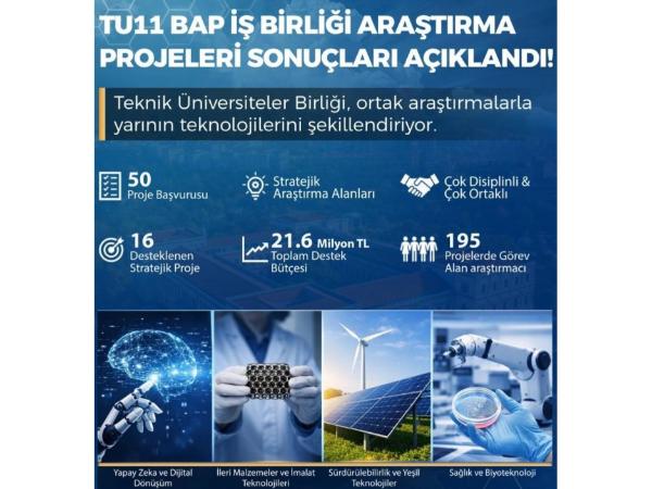 TU11 kapsamında Üniversitemizden sunulan 14 projeden 7'si desteklenmeye hak kazanmış, bunlardan ikisi Mühendislik Fakültesi öğretim üyeleri tarafından yürütülmektedir.