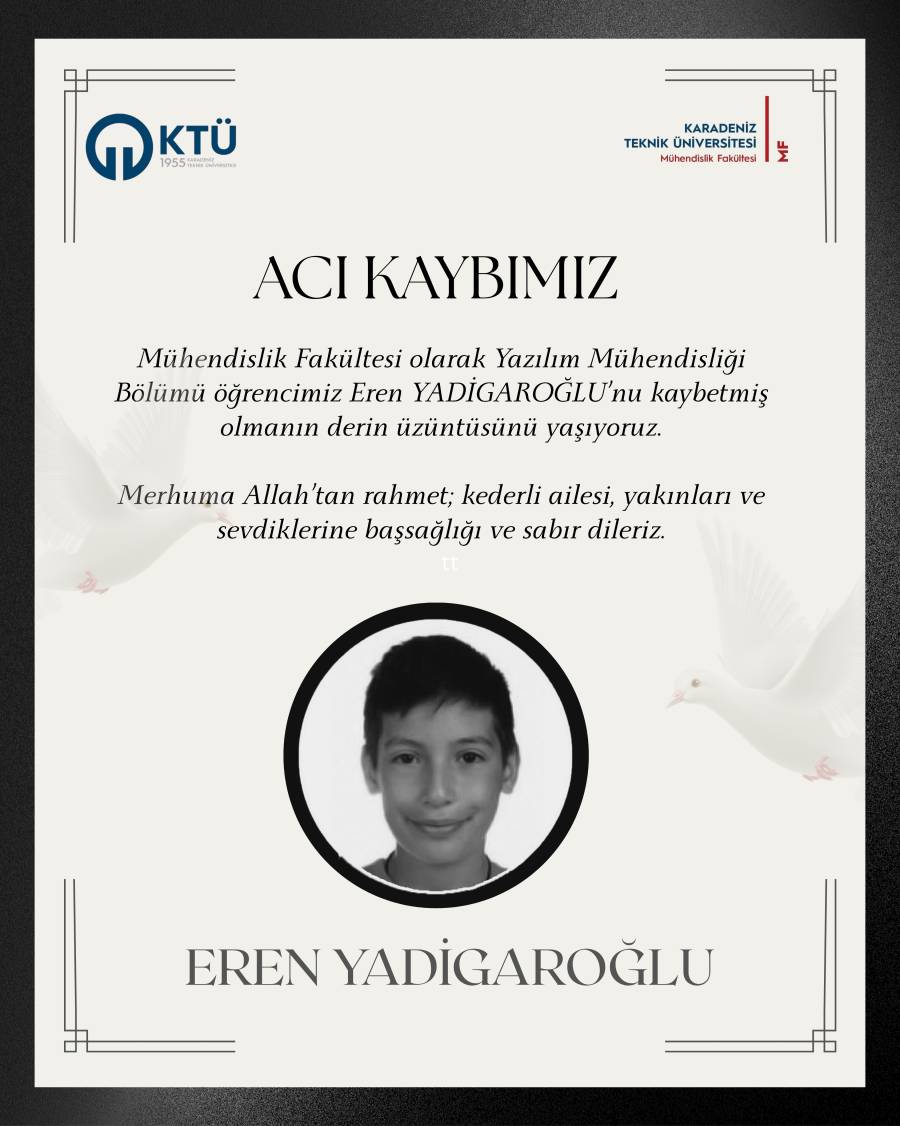 Mühendislik Fakültesi olarak Yazılım Mühendisliği Bölümü öğrencimiz Eren YADİGAROĞLU’nu kaybetmiş olmanın derin üzüntüsünü yaşıyoruz.