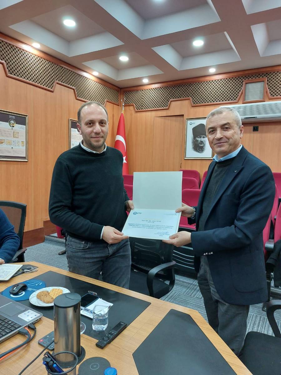 Prof. Dr. Burak MARKAL'a, tescil edilen patenti dolayısıyla teşekkür belgesi takdim edildi.