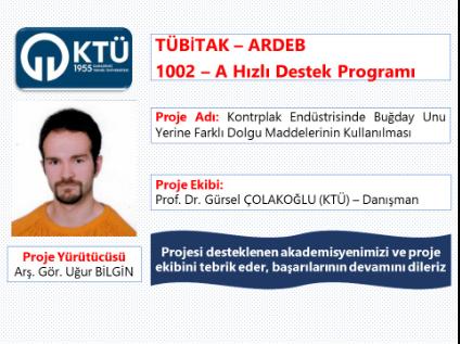 Projesi desteklenen araştırmacımızı ve proje ekibini tebrik eder, başarılarının devamını dileriz.