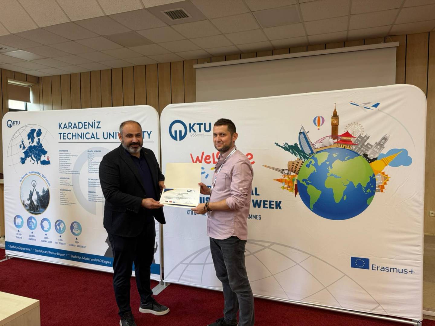 At the closing ceremony, certificates were presented to the participants by Prof. Dr. Sercan EROL, General Coordinator of International Relations at Karadeniz Technical University.