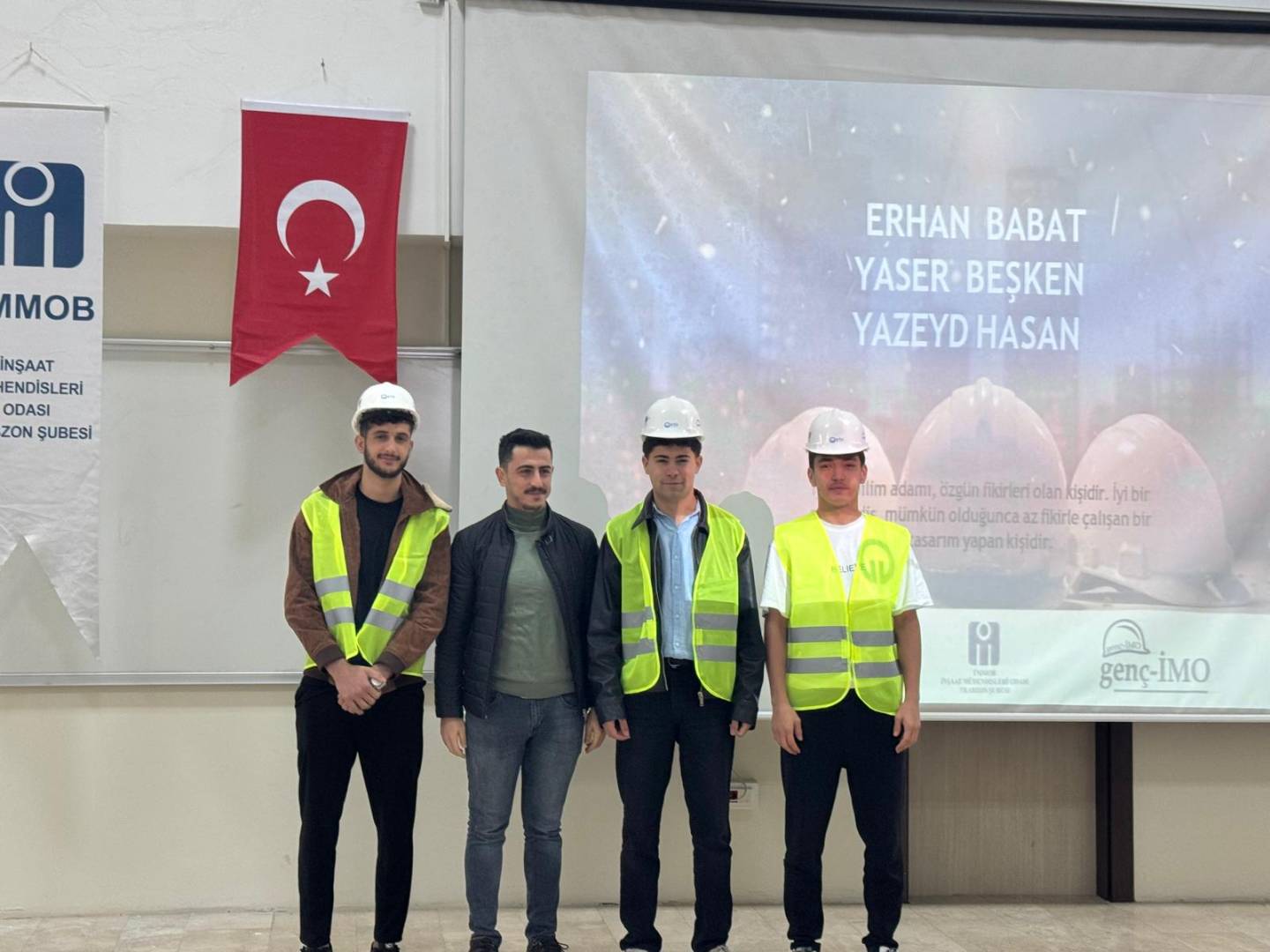 İMO Trabzon Şubesi Yönetim Kurulu Üyesi Zehra Gül Turhan inşaat mühendisi olmanın sorumluluğu ve önemine dair kısa bir konuşma gerçekleştirmiştir. Etkinlik 1.sınıf öğrencilerine baret takılmasıyla tamamlanmıştır.