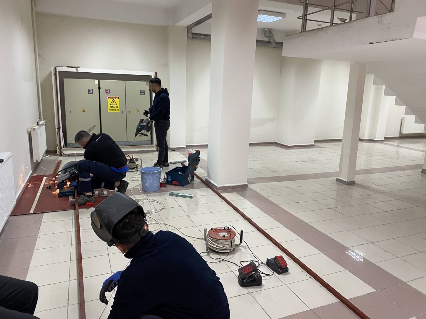 Yerleşkemizde bulunan 7 adet binanın giriş ve çıkış kapı önlerine kaydırmaz bant çekilerek olası bir düşme engellenmiş oldu.