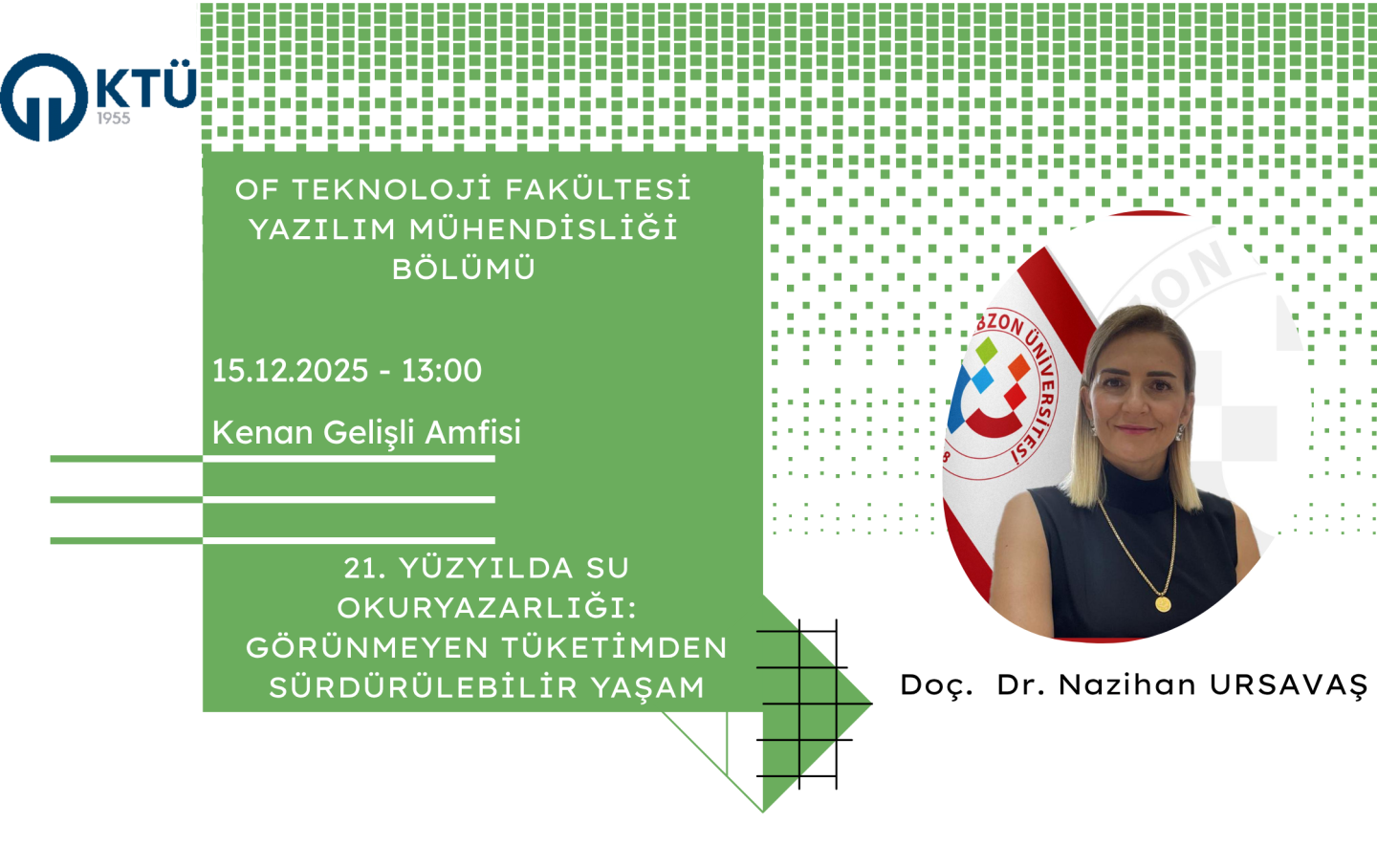 Of Teknoloji Fakültesi Yazılım Mühendisliği Bölümü tarafından düzenlenen etkinlik, Doç. Dr. Nazihan Ursavaş’ın katılımıyla 15 Aralık 2025 Pazartesi günü saat 13.00’te Kenan Gelişli Amfisi’nde gerçekleştirilecektir.